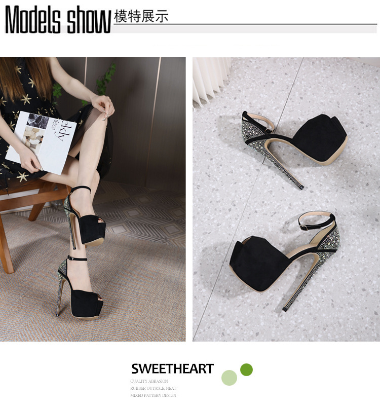 2023 летняя новая женская обувь на тонком каблуке со стразами модные удобные сандалии на высоком каблуке 16 см внешняя торговля 42 ярда