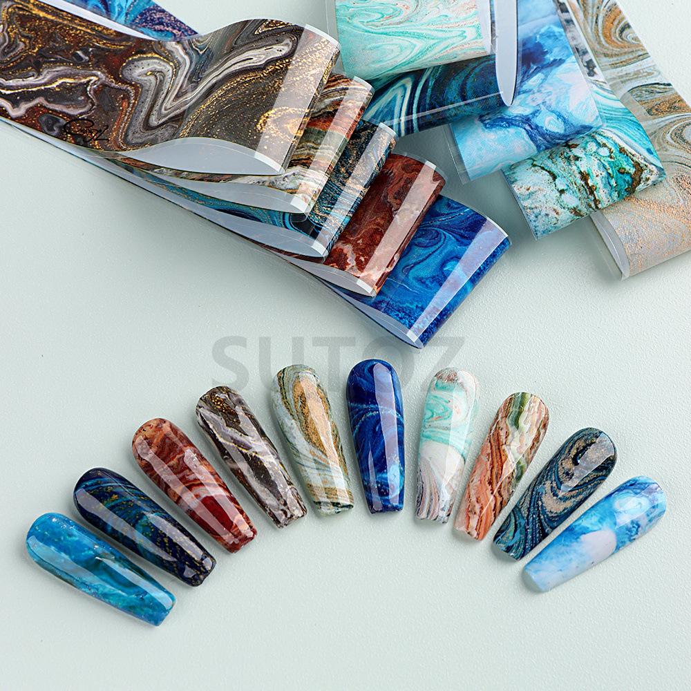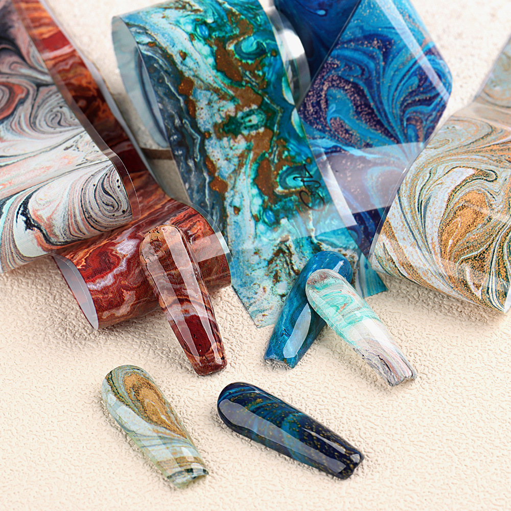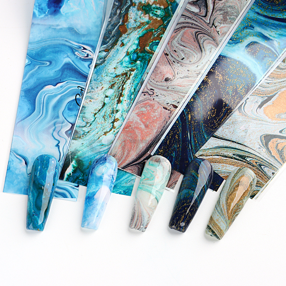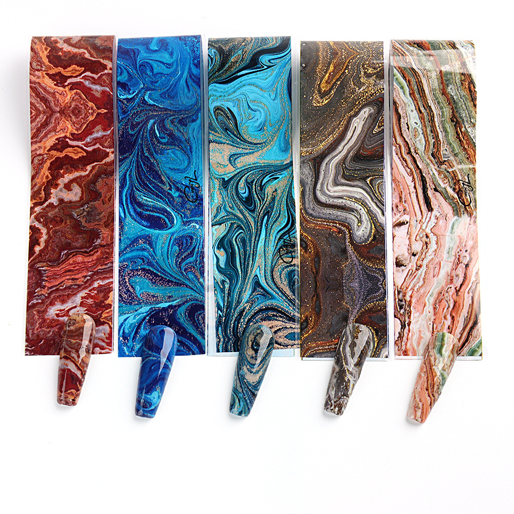 2023 дизайн ногтей звездное небо бумага передача Цзиндийский мраморный узор Цветущий цвет в коробке 10 производителей прямой гвоздь