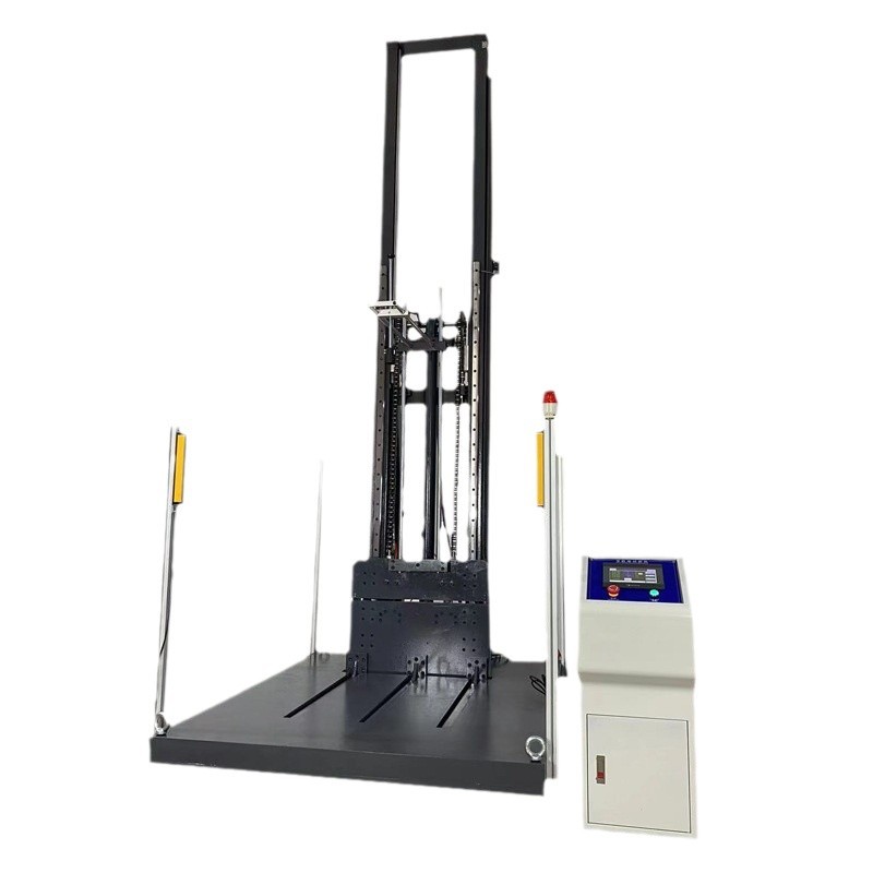 对于大型包装货物,一般质量较大,在运输,搬运时垂 直跌落的高度较低,因此,要求跌落试验台的试验跌落高度也较低,零跌落试验机主要用于较大型包装件作跌落试验。零跌落试验机由一个可以快速向下移动的“E”型叉作为试件托架,被试货物按试验要求(面,棱,角试验)放置平衡。试验时,托板高速向下运动,脱离试件,“E”型叉在被试包装货物跌落至底板前,已在高效减振器的作用下,嵌平于底板,从理论上,零跌落试验机可从零高度至最大跌落高度范围作跌落试验。 采用双柱导向、液压缓冲。跌落高度可固定环设置,能实现棱、面、角跌落试验。主要用于考核产品包装件在运输和装卸过程中的承受跌落能力,从而改进、完善包装设计。 零跌落试验台采用板式双导轨导向、电动提升系统,适用于外形尺寸较大的包装试件做跌落试验。装卸试件方便、快捷、可实现棱、面、角较低高度跌落试验,跌落高度可以从零开始。 |
