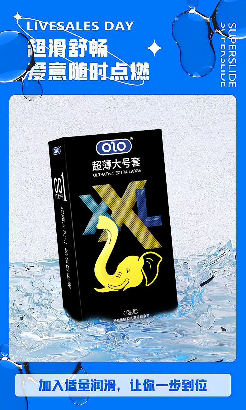 OLO避孕套均使用含透明质酸水溶性润滑液。追求更体贴,更舒适,更健康!