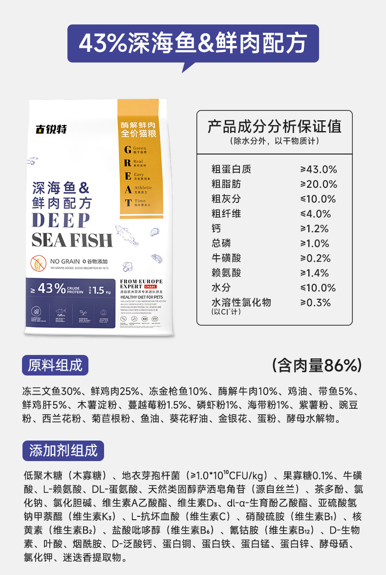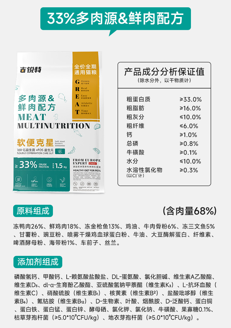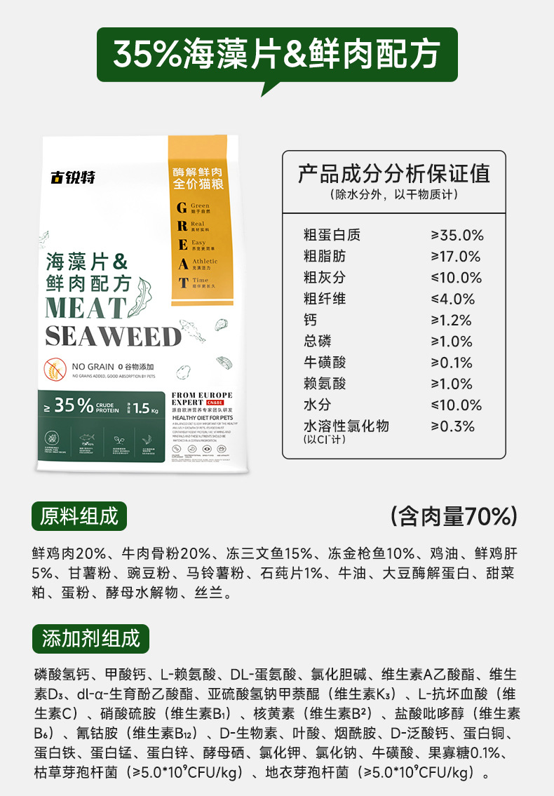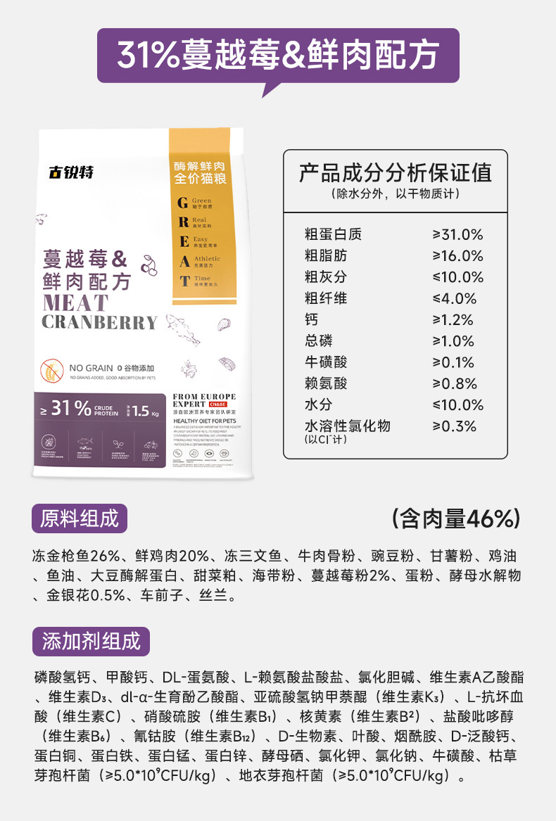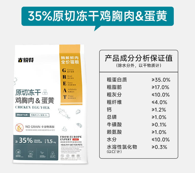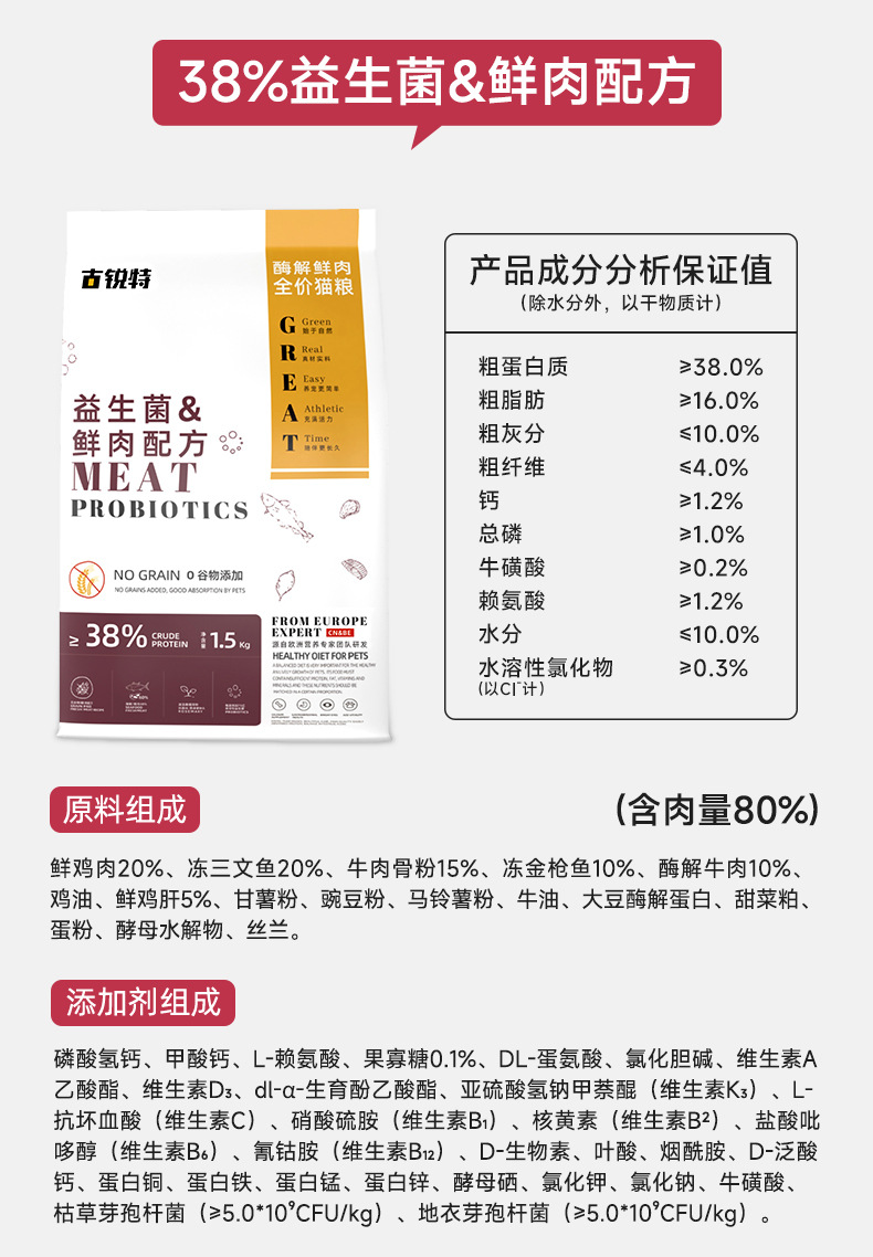 Распределение корма для кошек Gureite Эксклюзивная формула свежего мяса с высоким содержанием белка Пробиотики без зерна Регулирование кишечника
