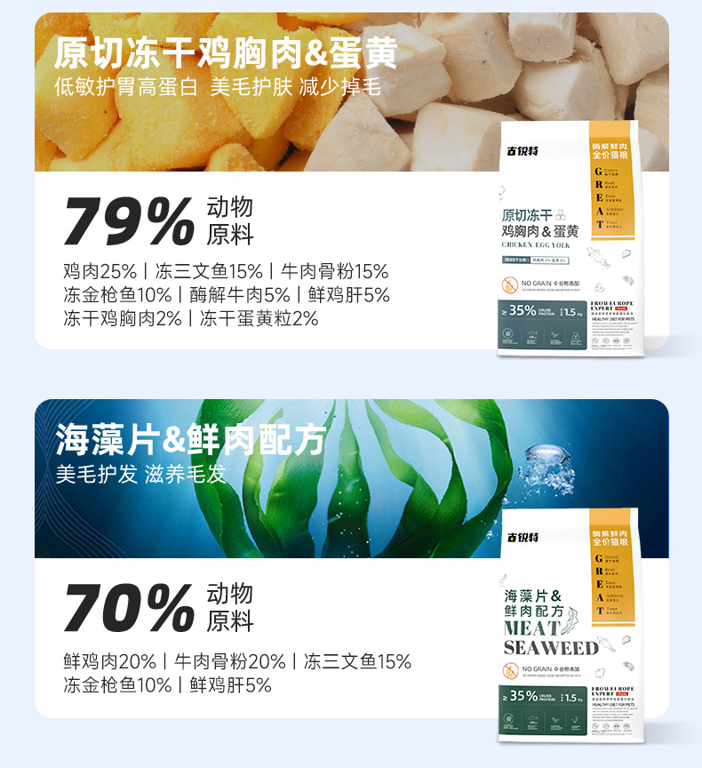 Новый продукт [серия squab] пончики; 31 Рецепт протеинового клюквенного свежего мяса; 33-белковая формула для устранения мягкого стула с несколькими источниками; 35-белковый рецепт свежего мяса из морских водорослей; 35 рецептов сублимированного мяса с двойной свежестью; 38-белковая пробиотическая формула из свежего мяса; 43 Рецепт мяса глубоководной рыбы