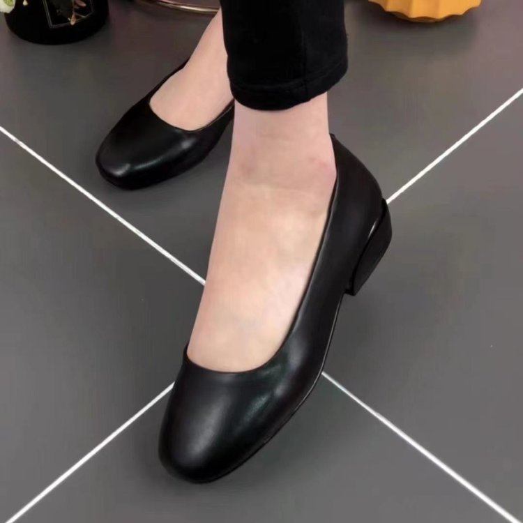 Внешняя торговля Оптовая обувь женская 2022 осень новый низкий каблук толстый каблук резиновые неглубокий рот квадратная голова скидка обувь Рабочая обувь