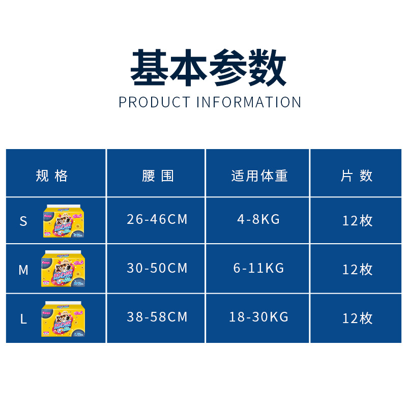 Подгузники для собак XS Code 12/сумка (подходит для талии 15-33 см); Подгузники для собак мужского пола S Code 12/сумка (подходит для окружности талии 30-48 см); Подгузники для собак мужского пола M Code 12/сумка (подходит для талии 45-63 см); Общественные подгузники для собак L Code 12 шт./Пакет (подходит для окружности талии 64-81 см); Подгузники Bitch S Code 12 (подходят для окружности талии 26-46 см); Подгузники Bitch M Code 12 (подходят для окружности талии 30-50 см); Подгузники Bitch L Code 12 (подходят для талии 38-58 см)
