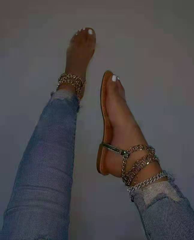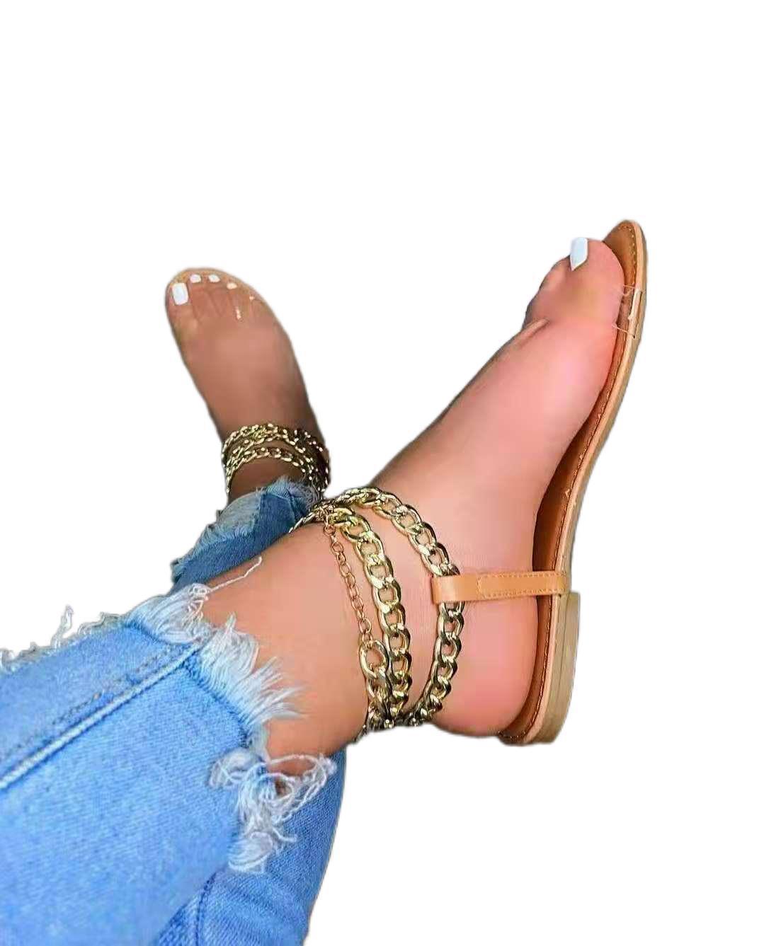 Внешняя торговля Большие размеры сандалии женские 2022 Новые плоские круглые носок металлическая цепочка прозрачная верхняя одежда сандалии женские пляжные сандалии