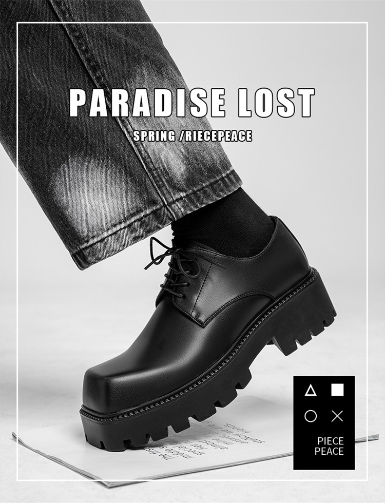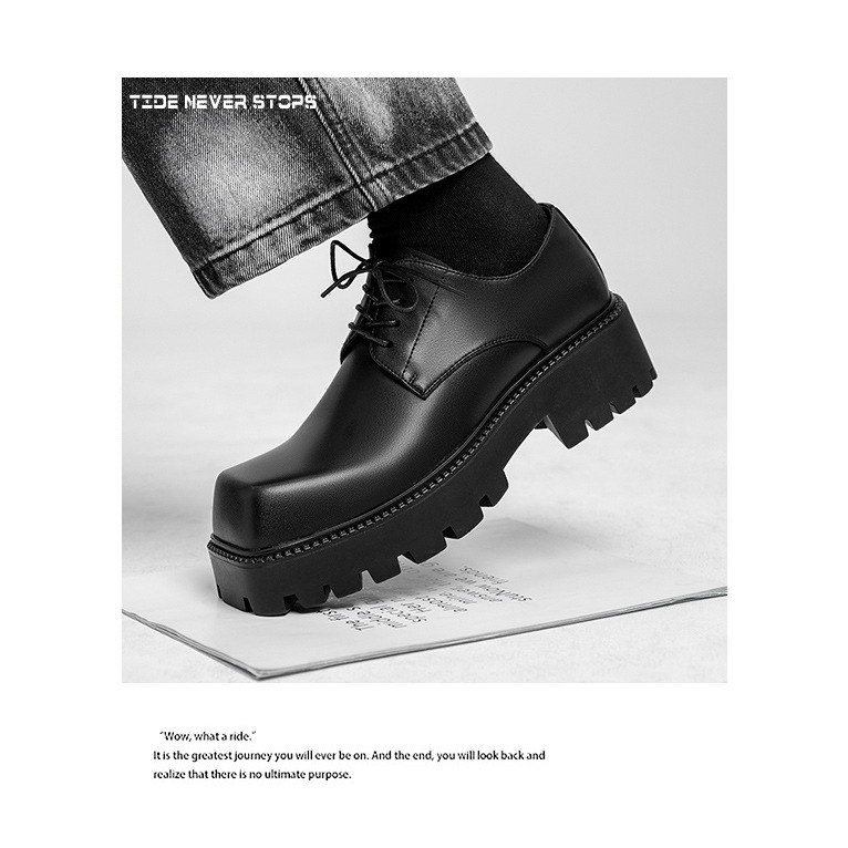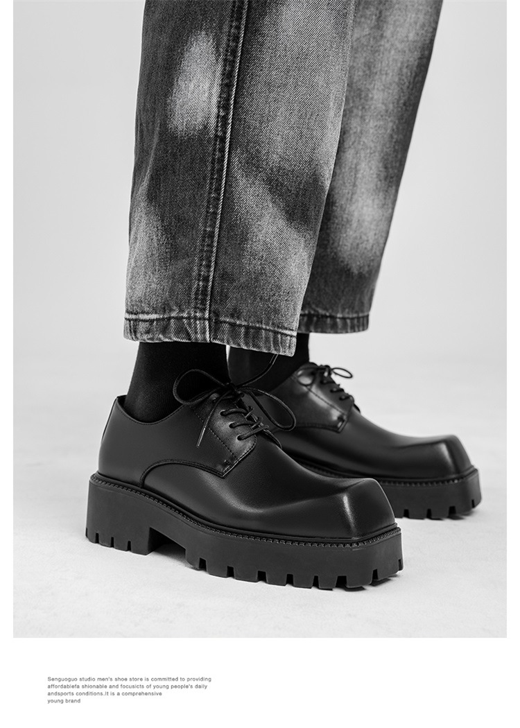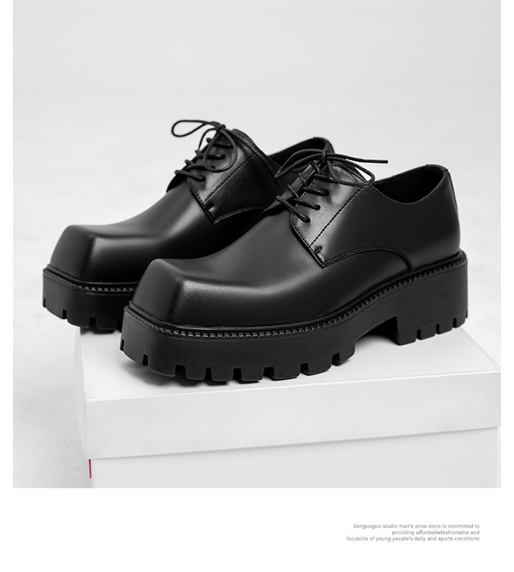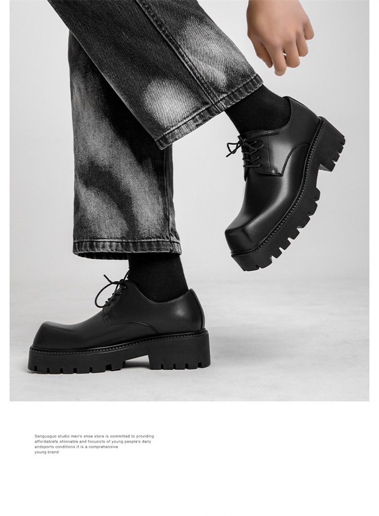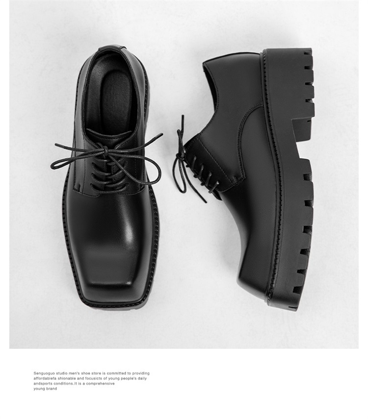 Молодежные кожаные туфли с квадратным носком в Корейском стиле, мужская обувь на толстой подошве, увеличивающая рост, модная универсальная повседневная обувь, мужские туфли дерби, свадебные туфли