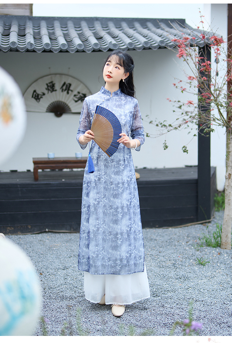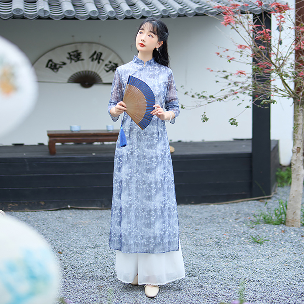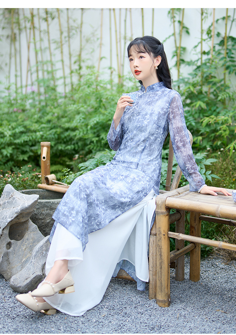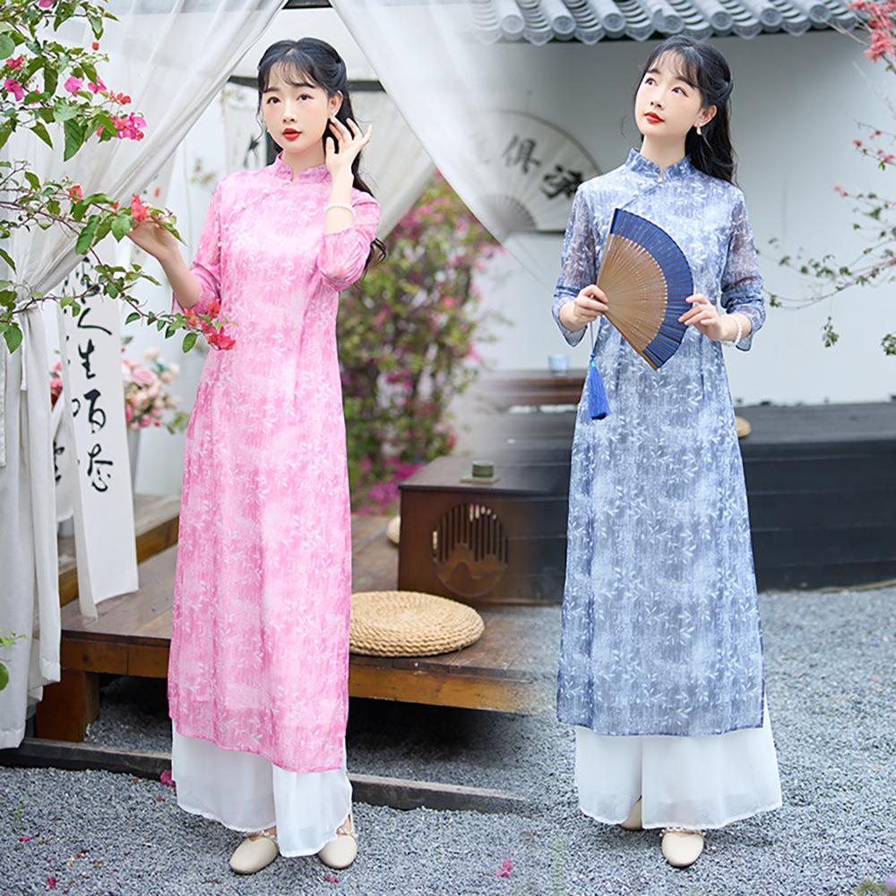 1731 настоящий выстрел Ретро светский темперамент весеннее модное платье широкие брюки костюм из двух частей весенний женский чонсам