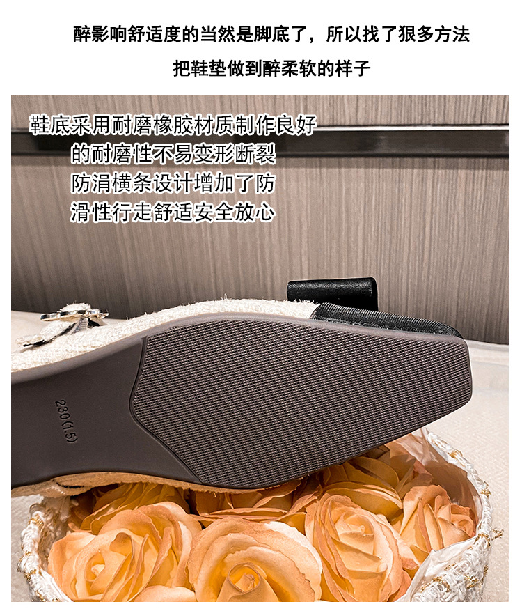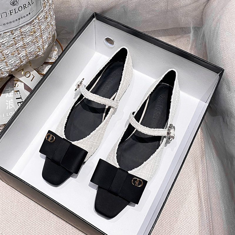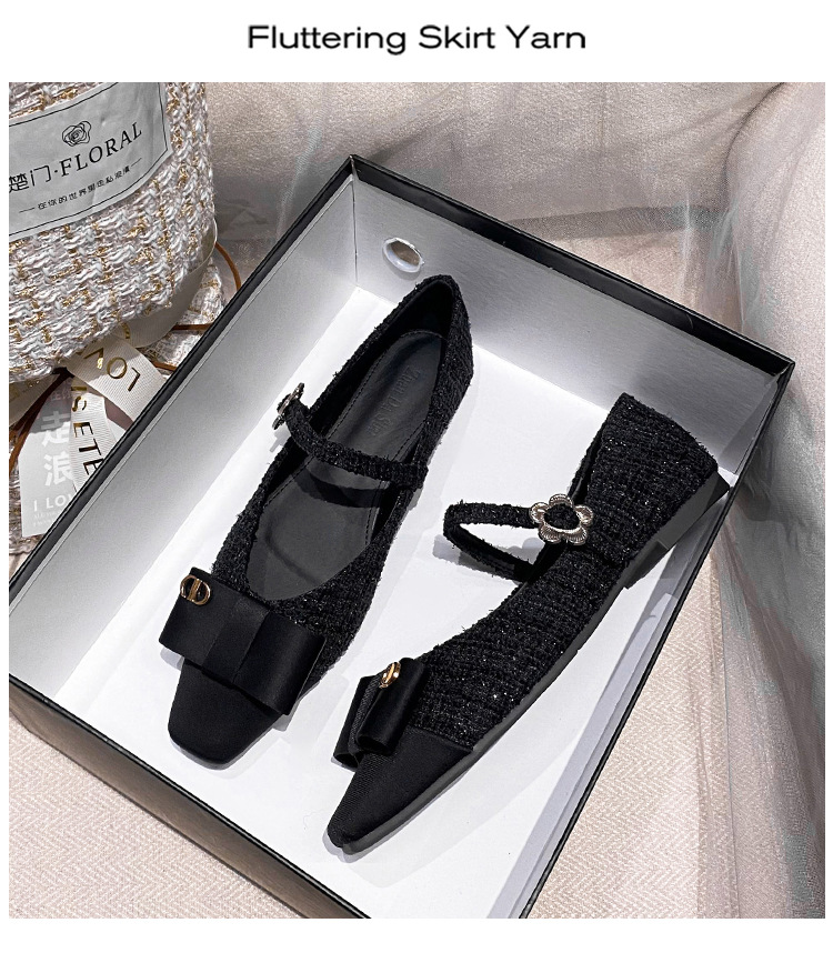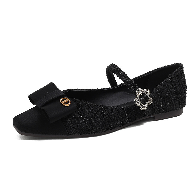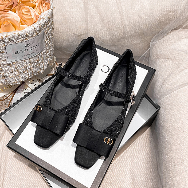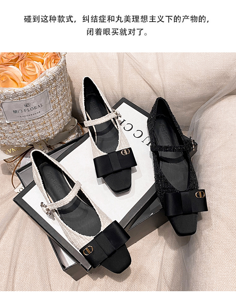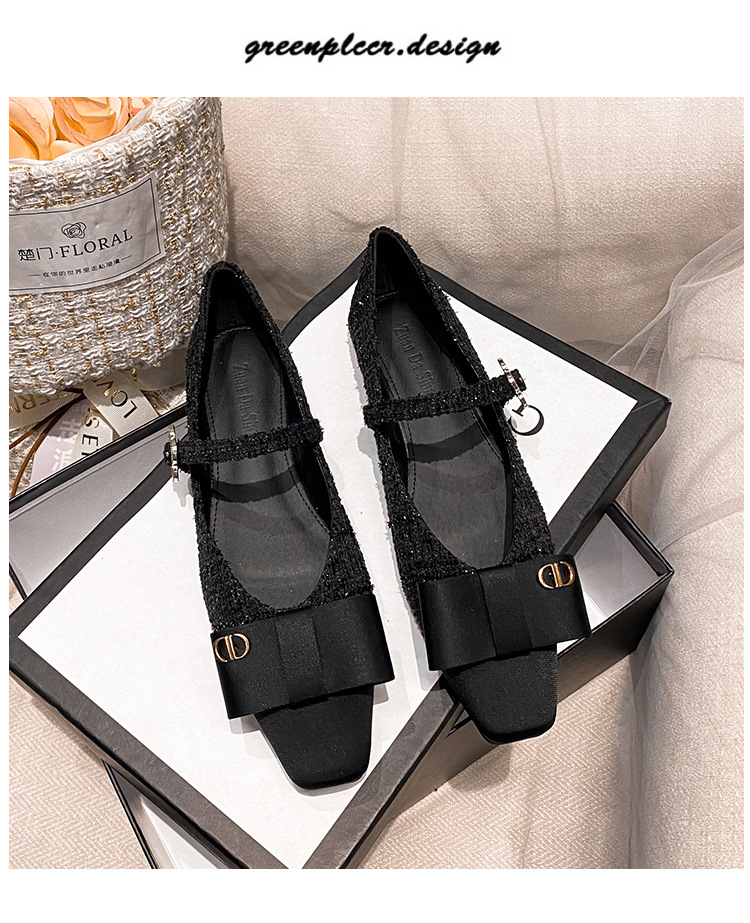 Квадратная голова мелким ртом Мэри Джейн туфли на плоской подошве Маленький ароматный стиль женщин нишевый дизайн плюс размер обуви 41-43