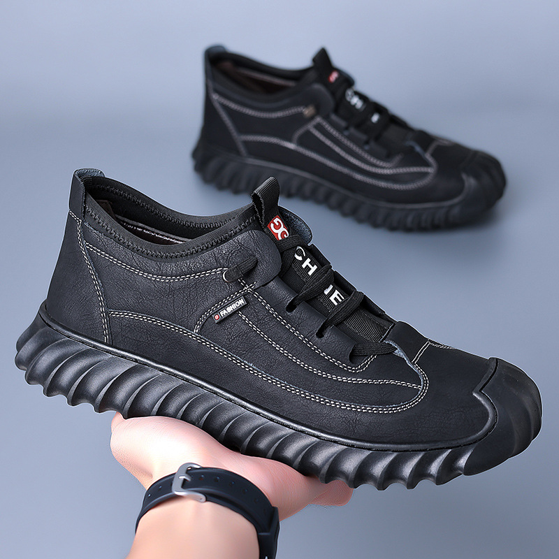 2024 весенне-Осенняя обувь из мягкой кожи, Мужская Рабочая обувь с большой головой, повседневные короткие сапоги с высоким верхом, модная обувь, обувь Martin, Мужская толстая подошва