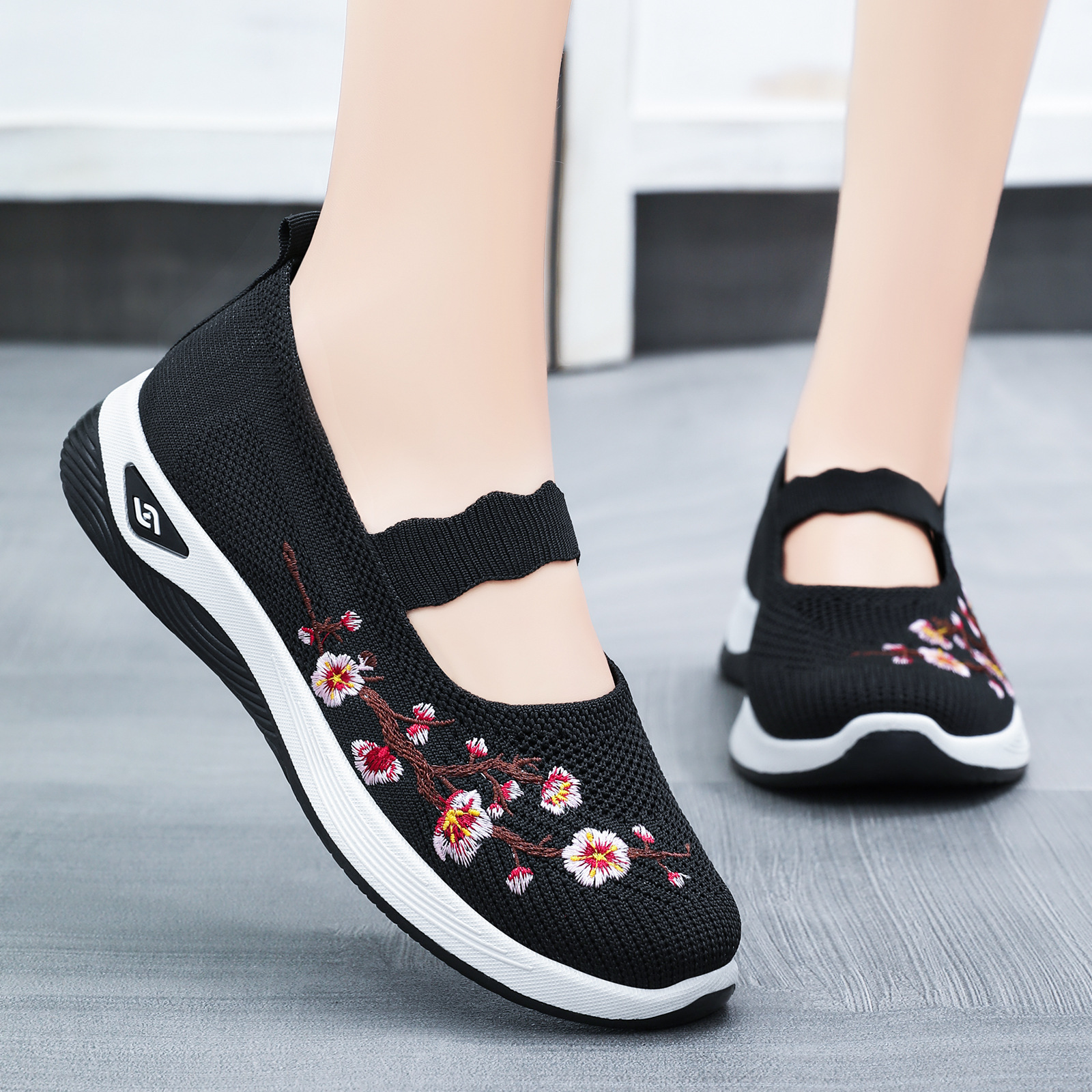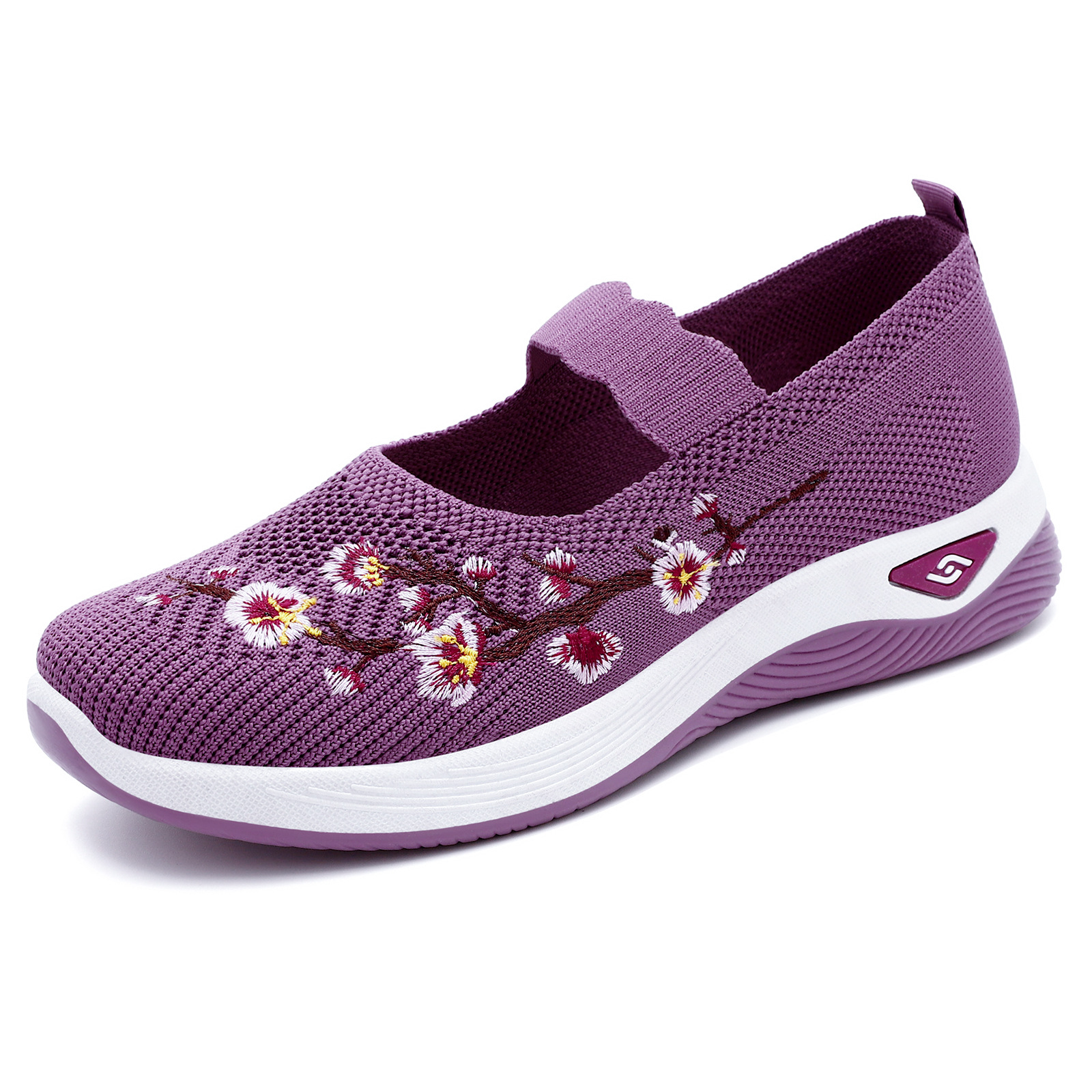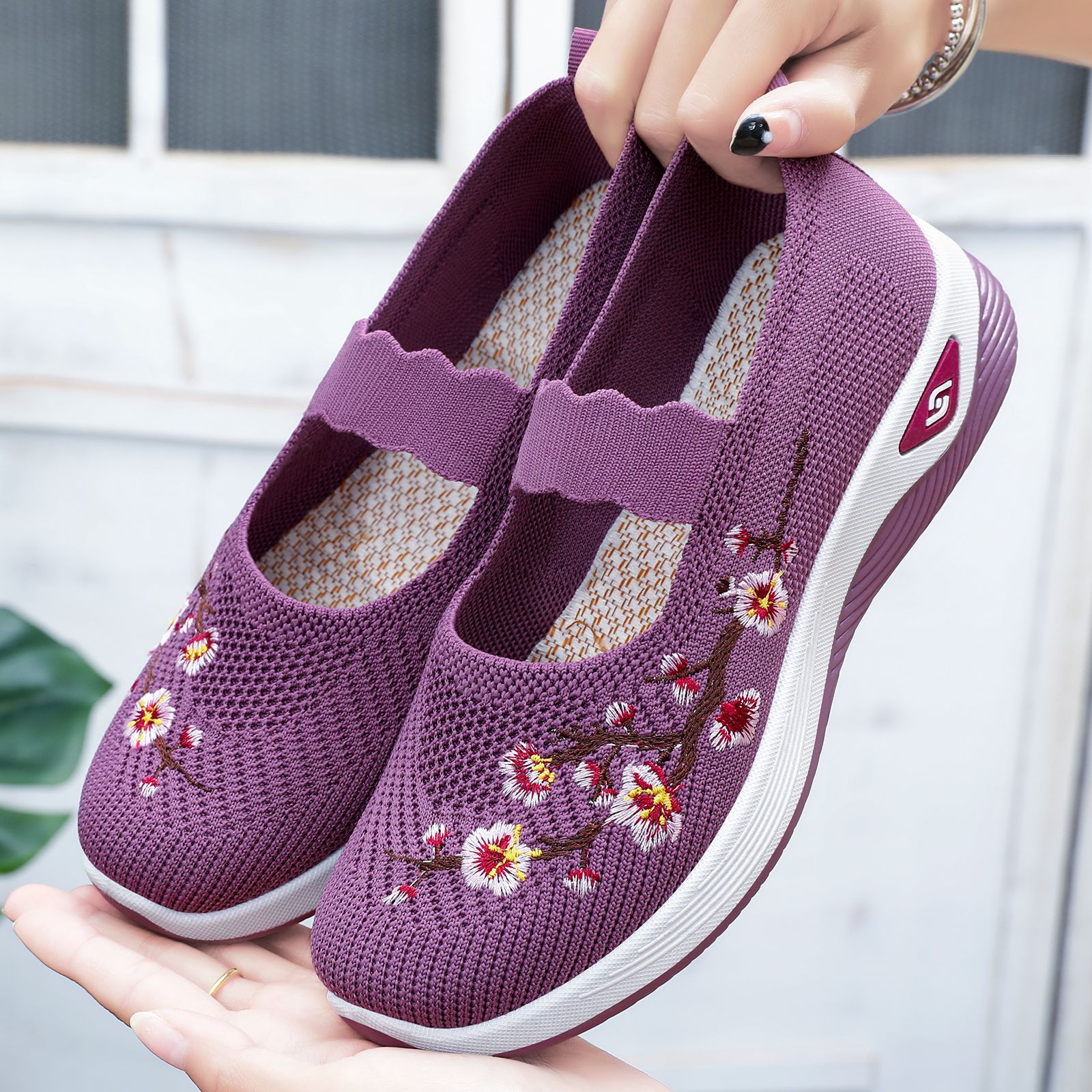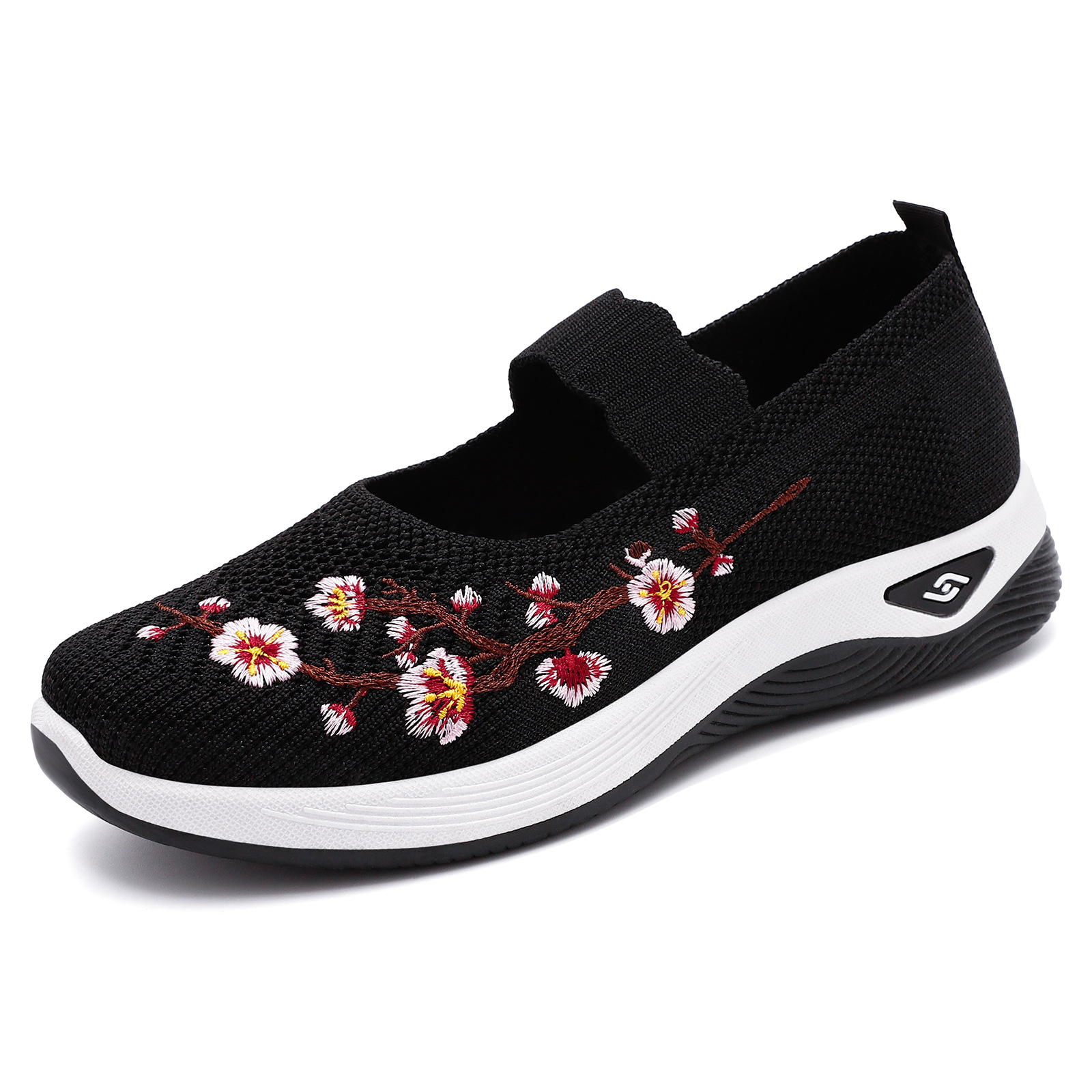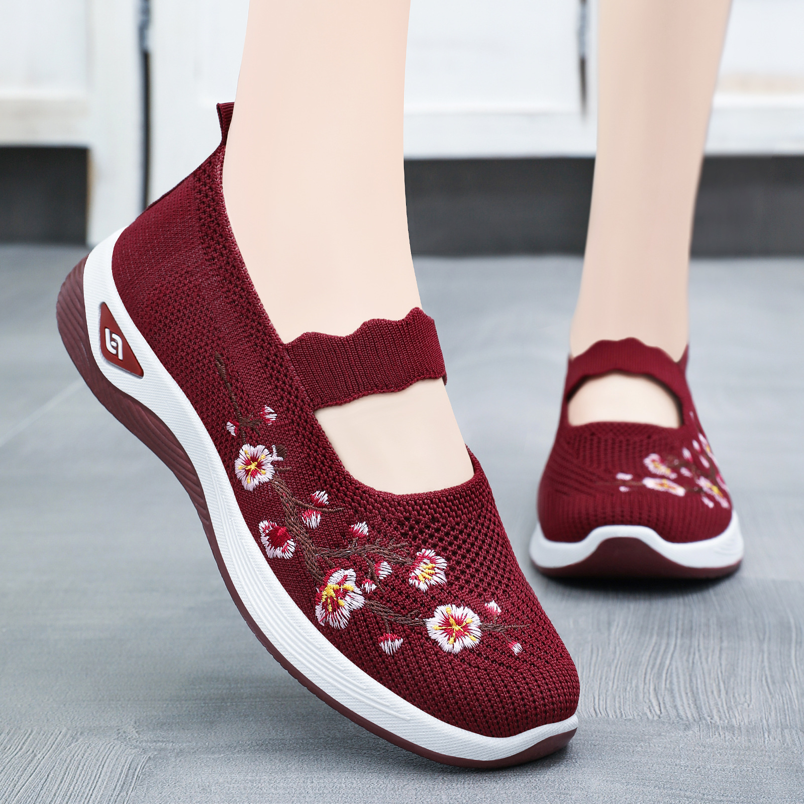 Обувь для мам на лето Новые однослойные туфли с вышивкой и низким вырезом, Женская дышащая повседневная обувь, слипоны