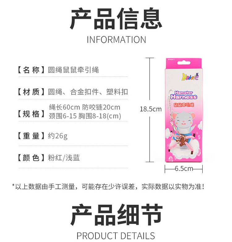 Тяговый трос для хомяка против укуса трос для ходьбы мышь из ветра Тяговый ремень взаимодействие хомяка для снятия скуки
