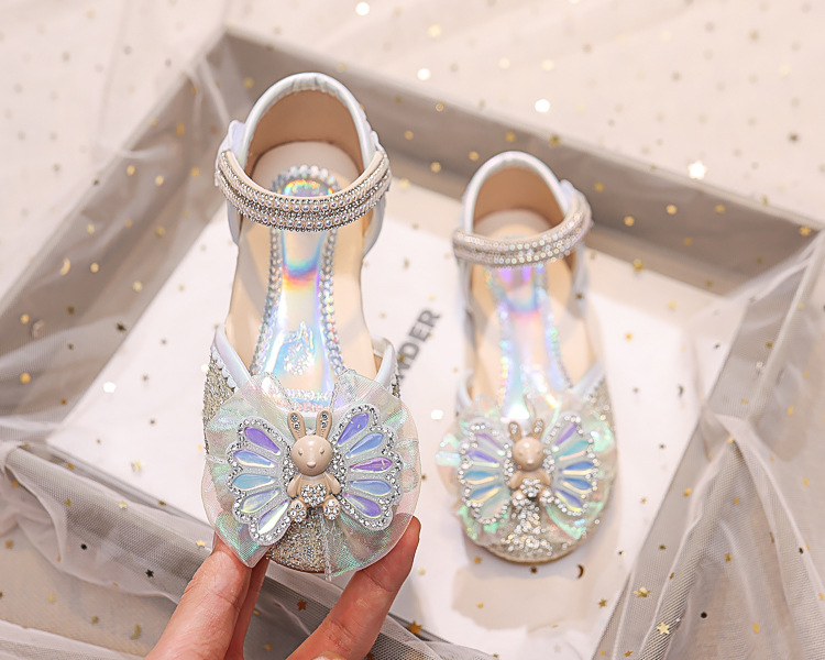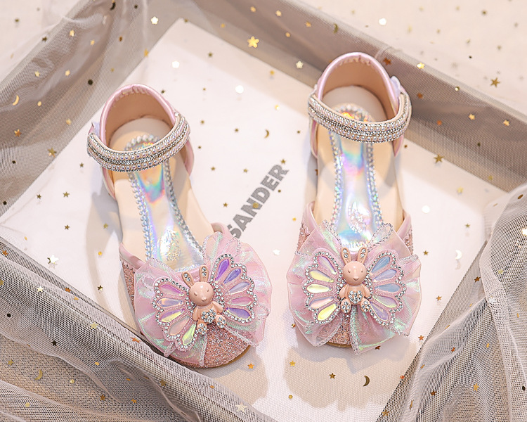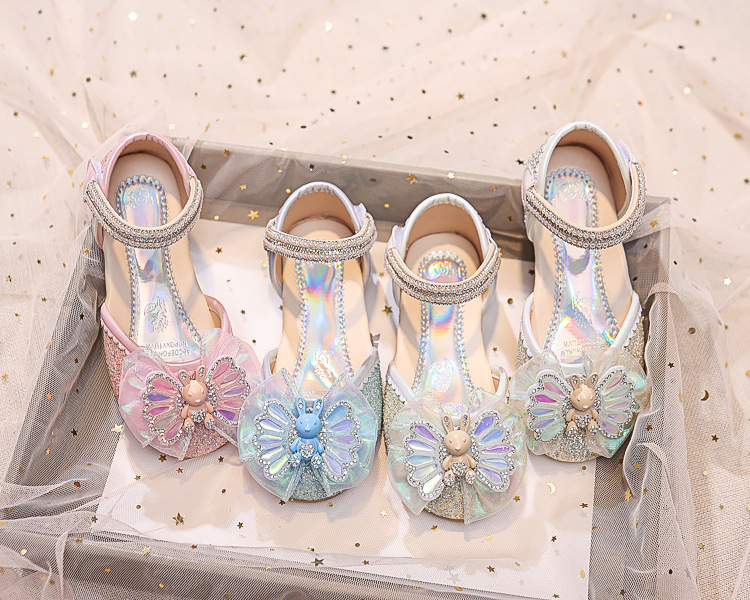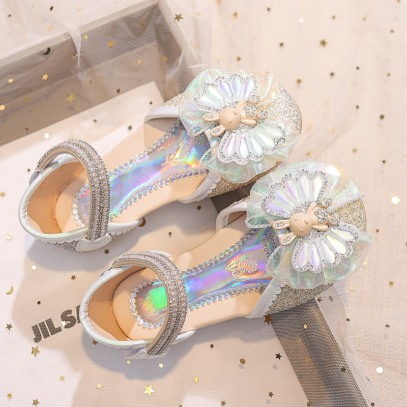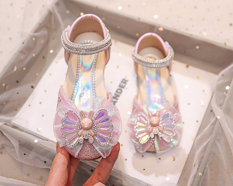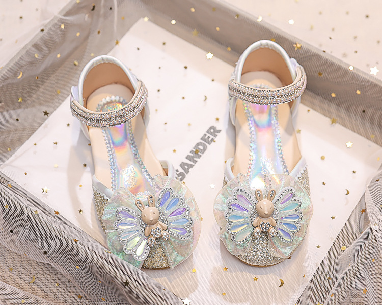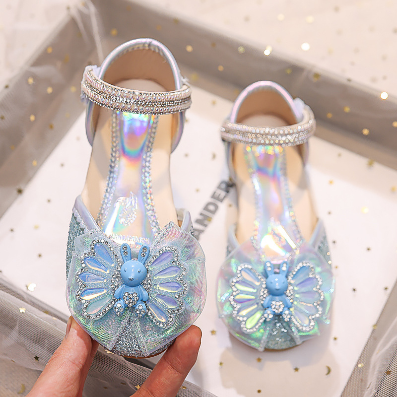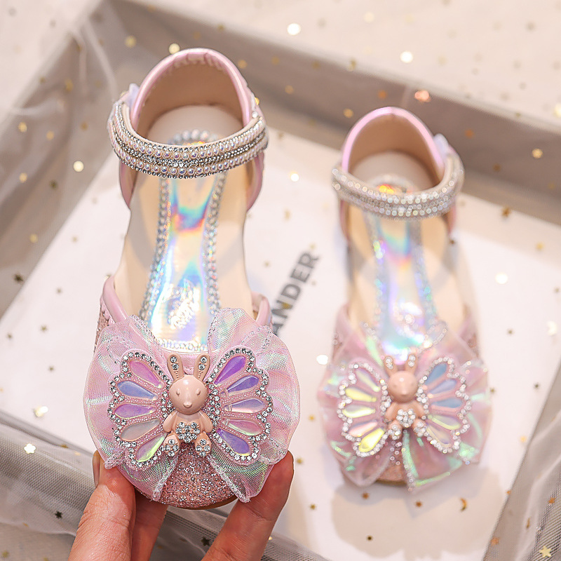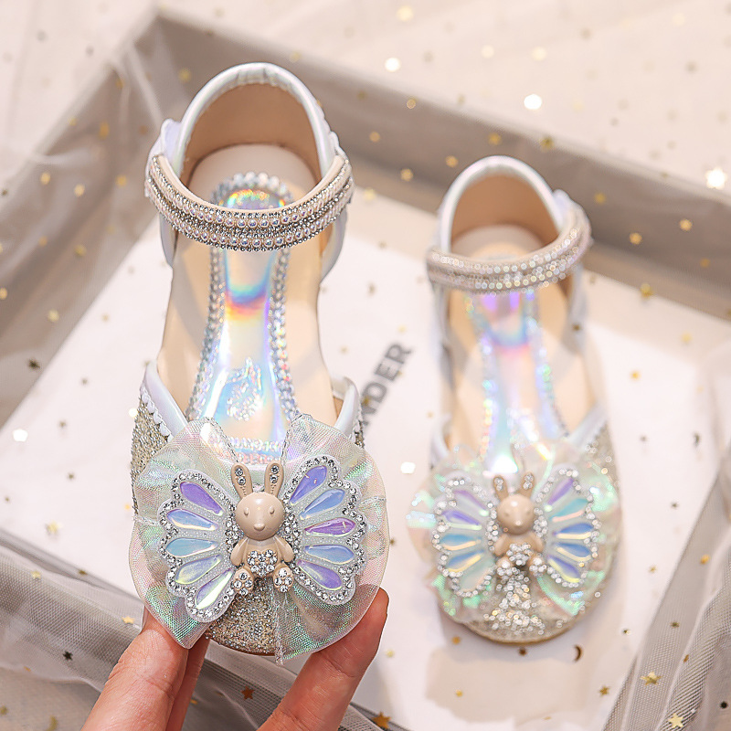 Новые летние сандалии для девочек 2025 года: модные закрытые туфли с кристаллами, бантом и кроликом для старших детей, для выступлений
