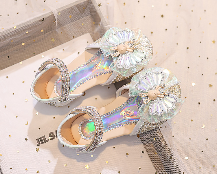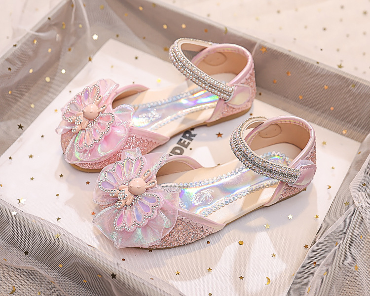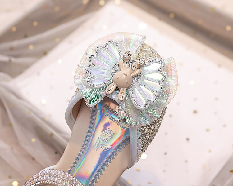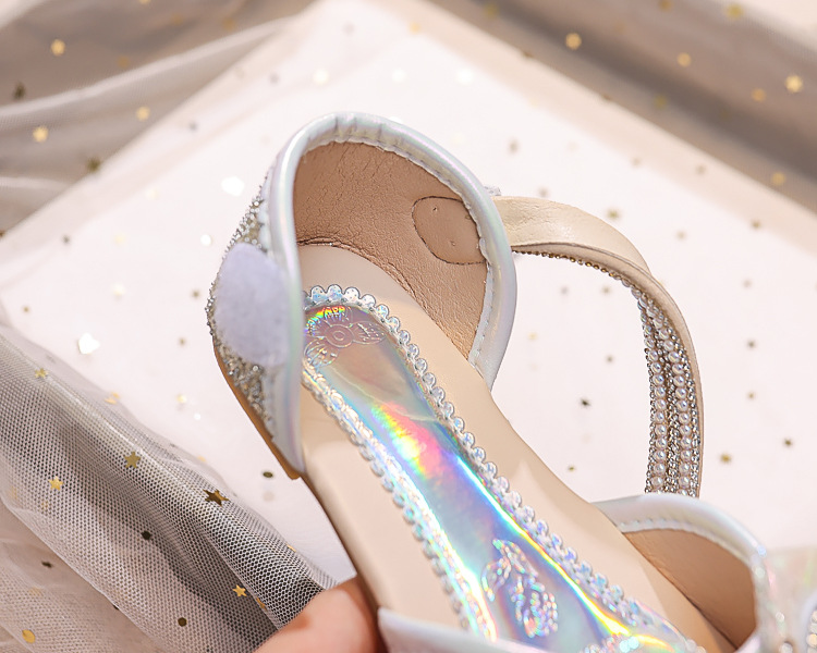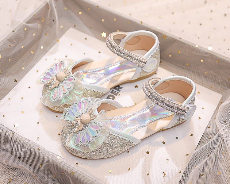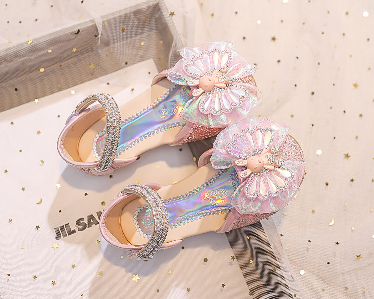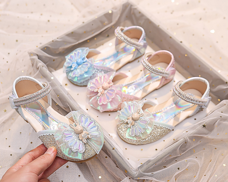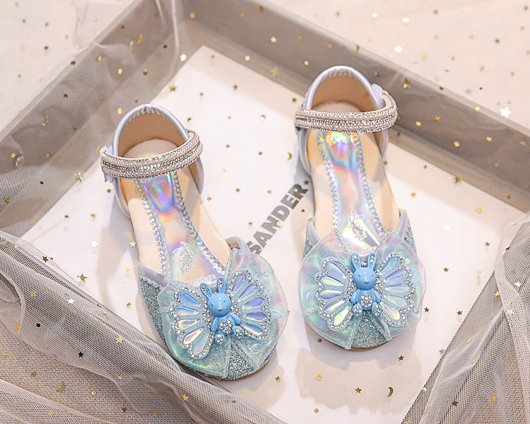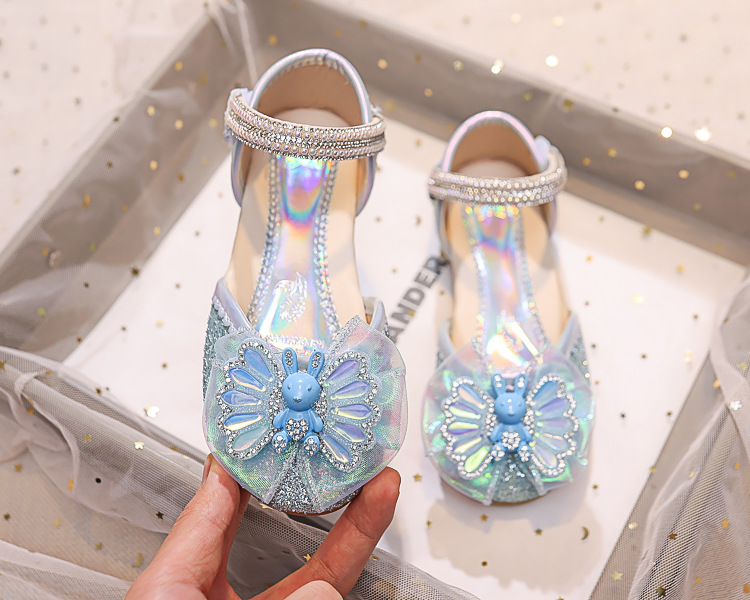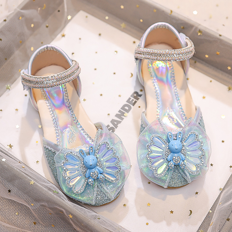 Новые летние сандалии для девочек 2025 года: модные закрытые туфли с кристаллами, бантом и кроликом для старших детей, для выступлений
