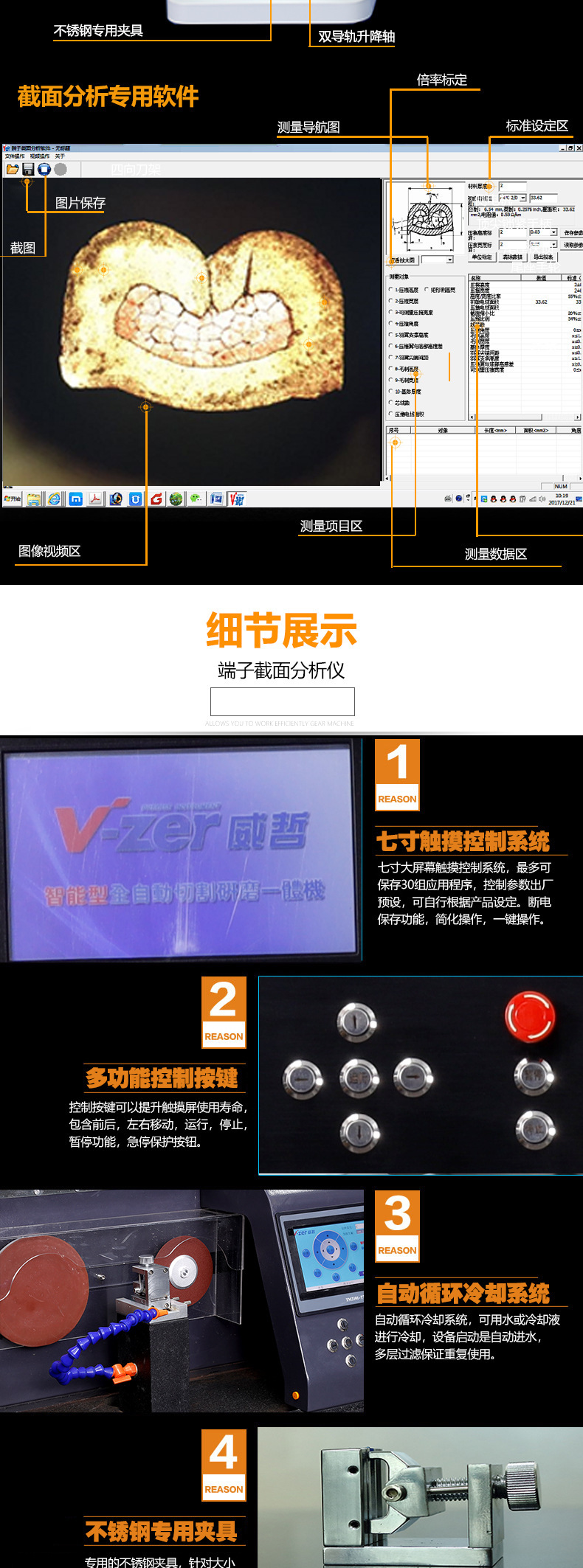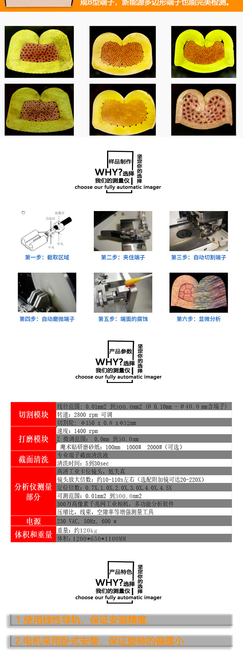 Полностью автоматический анализатор поперечного сечения клемм. Новый энергетический большой терминалный интерфейс/анализатор для разбивания поверхности/сечения с водяным охлаждением.