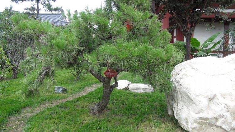 黑松(Pinus thunbergii Parl.),别名白芽松,常绿乔木,高可达30公尺,树皮带灰黑色。四月开花,花单,雌花生于新芽的顶端,呈紫色,多数种鳞(心皮)相重而排成球形。成熟时,多数花粉随风飘出。球果至翌年秋天成,鳞片裂开而散出种子,种子有薄翅。果鳞的麟脐具有短刺。原产日本及朝鲜南部海岸地区
