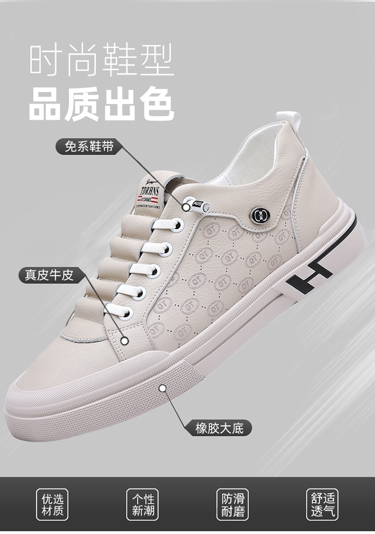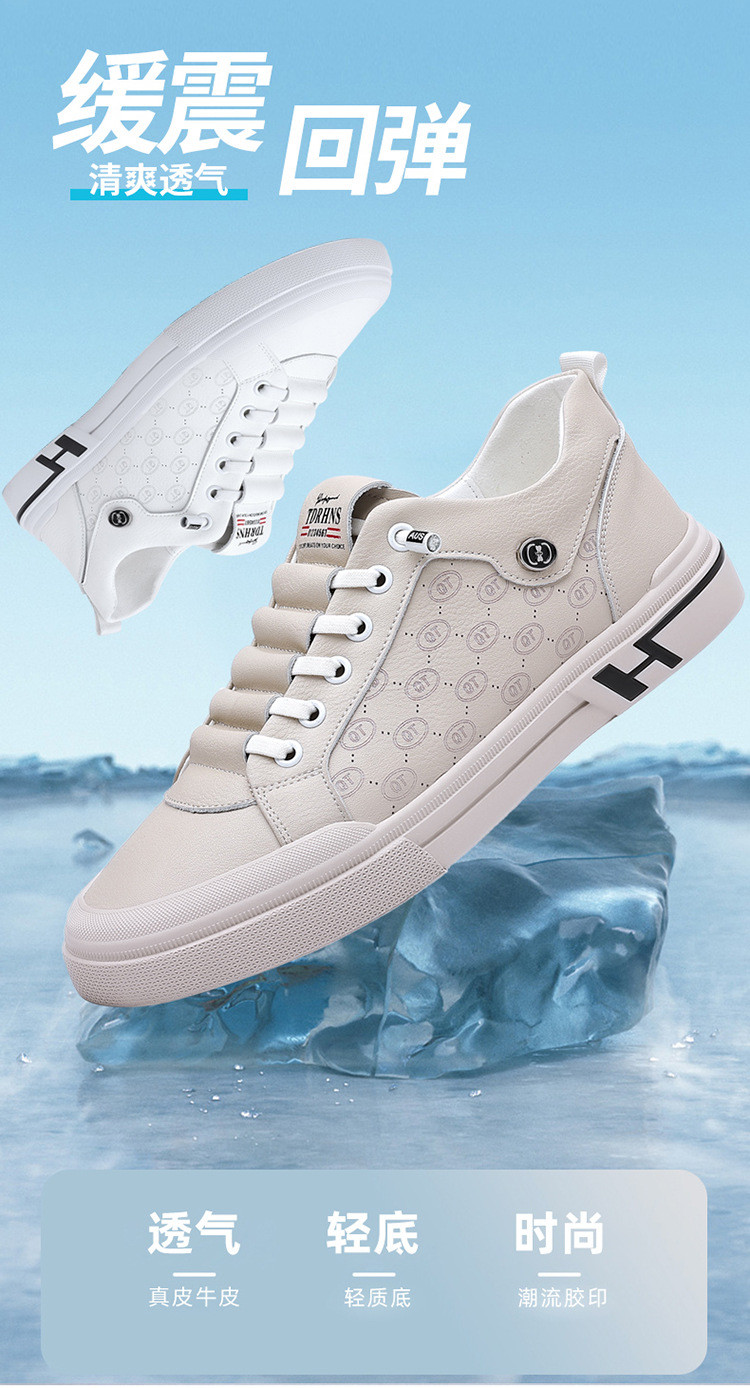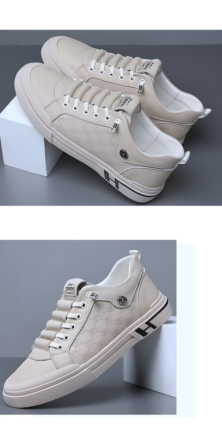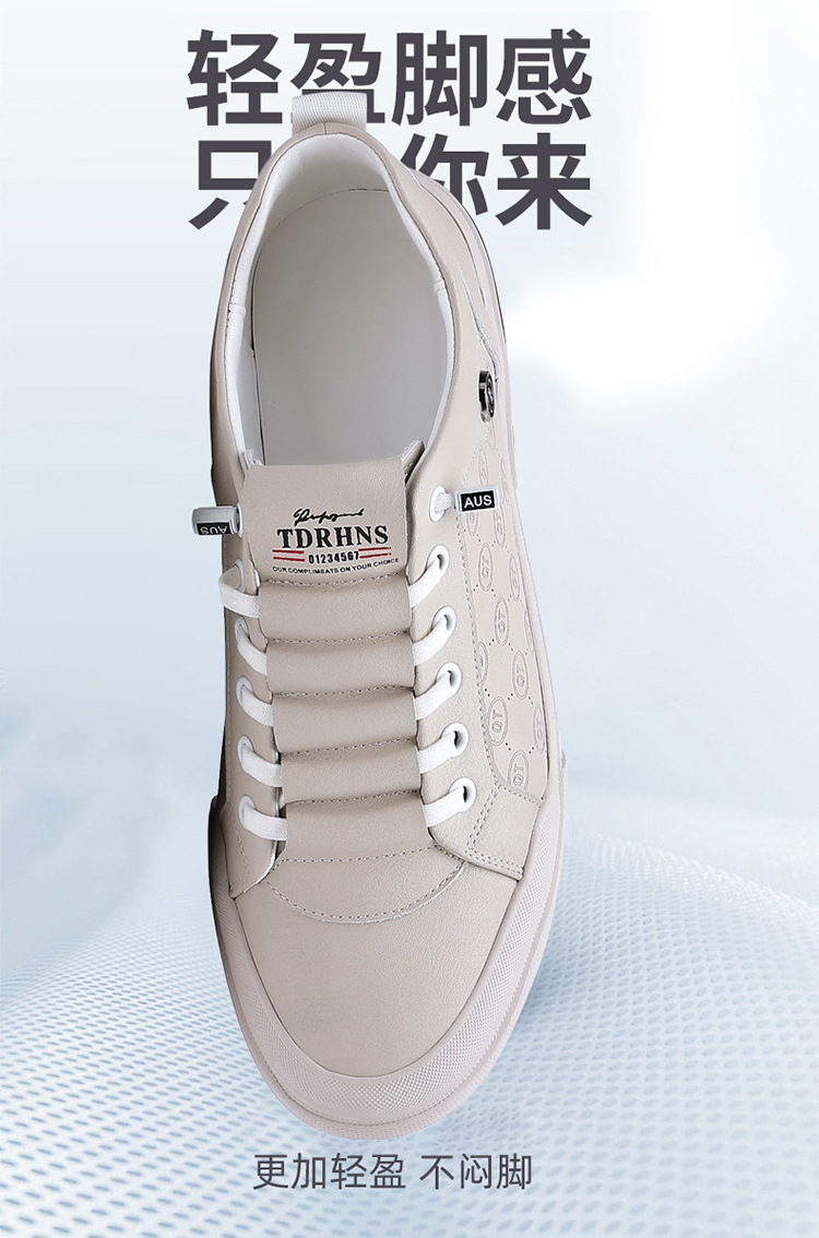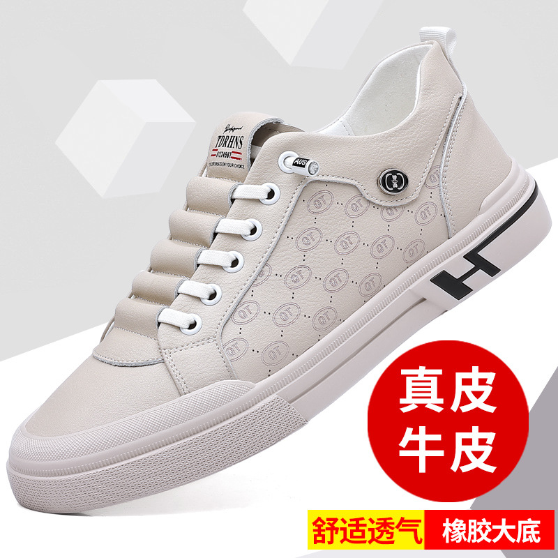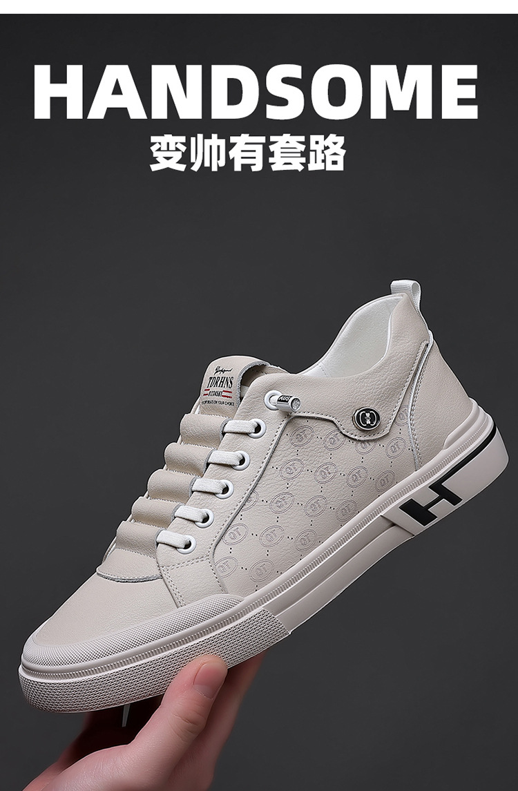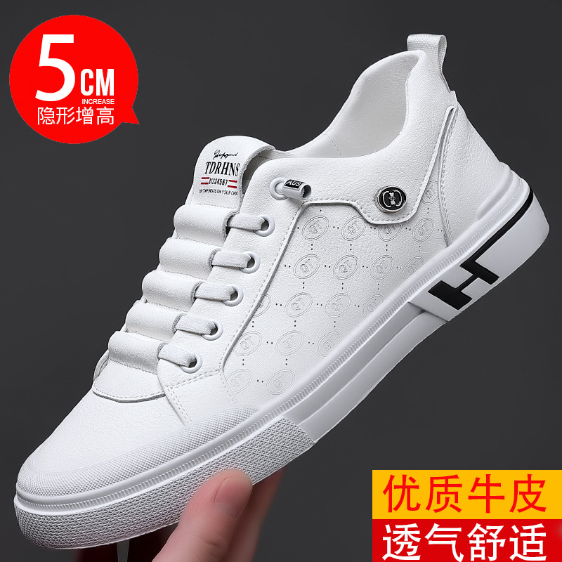 Весна и лето 2023 Мужская кожаная обувь с невидимым увеличением роста Мужская обувь с невидимым увеличением роста на 5 см Белая обувь Повседневная кожаная обувь Обувь для скейтбординга