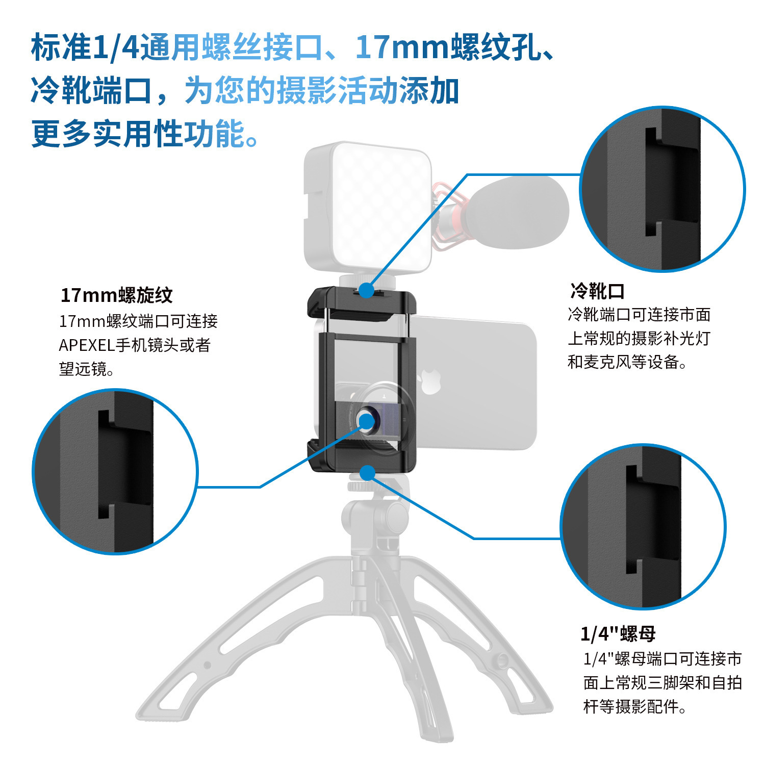 Трансграничный многофункциональный зажим для мобильного телефона с резьбой для приема камеры мобильного телефона для фотосъемки растягивающийся зажим с одним словом 17 мм с резьбой