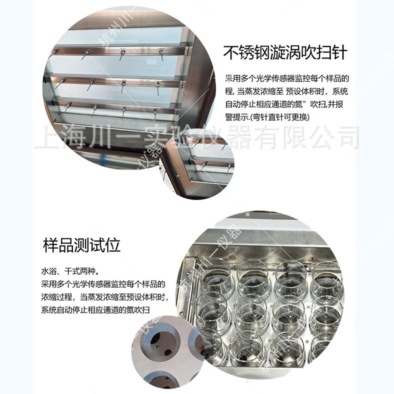11.氮气预热功能,通入的气体都是热气(温度:45度左右)加快了样品的浓缩反应,也防止了挥发的浓缩液与吹针之间冷凝,保证样品不会受到污染和交叉感染