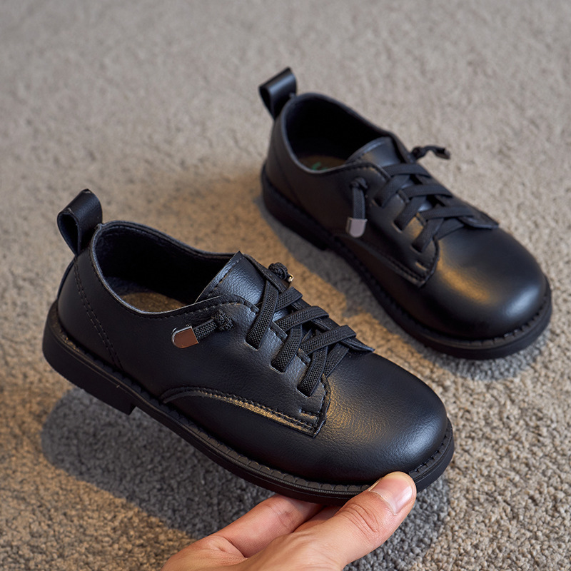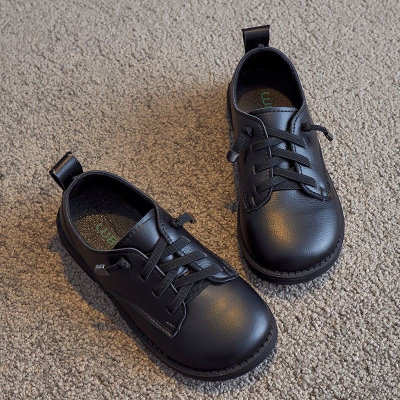 Кожаная обувь для мальчиков, Черная кожаная обувь с мягкой подошвой для выступлений и весенних выступлений, британская детская обувь для студентов, большая детская одиночная обувь