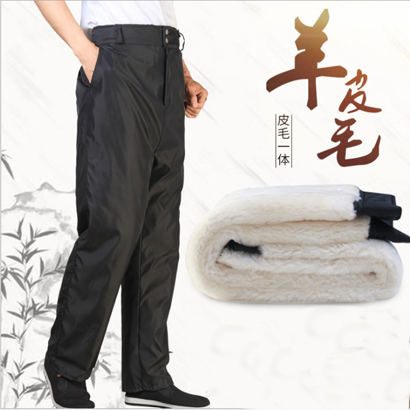 Оптовая продажа зимних шерстяных кожаных брюк от производителя, кожаные брюки с меховой подкладкой для людей среднего и старшего возраста, теплые и морозостойкие, из натуральной кожи.
