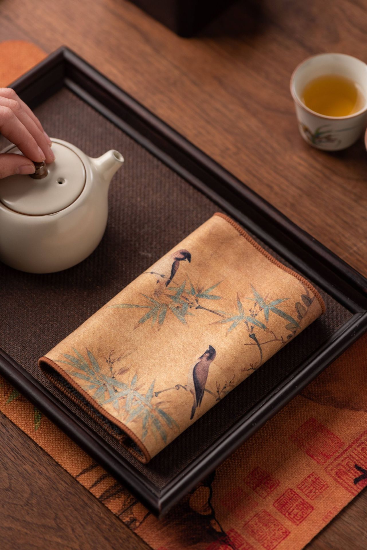 Толстое впитывающее кухонное полотенце с рисунками в стиле дзен, чайное полотенце, специальная скатерть для чайных сервизов, салфетка для чистки чайников, в стиле дзен.