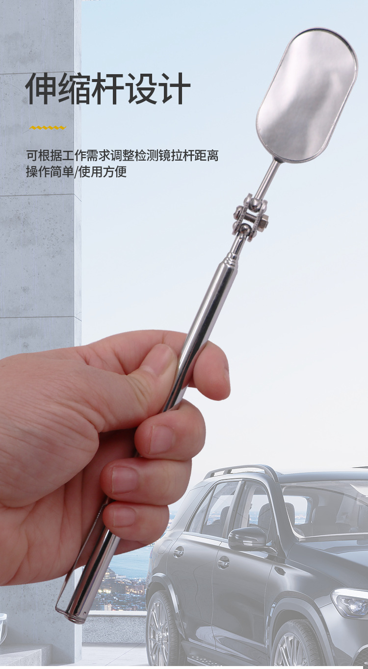 Проверьте размер светодиодного телескопического смотрового зеркала автомобиля с подсветкой, универсальное складное квадратное зеркало, нижнее зеркало для осмотра номера эндоскопа автомобиля