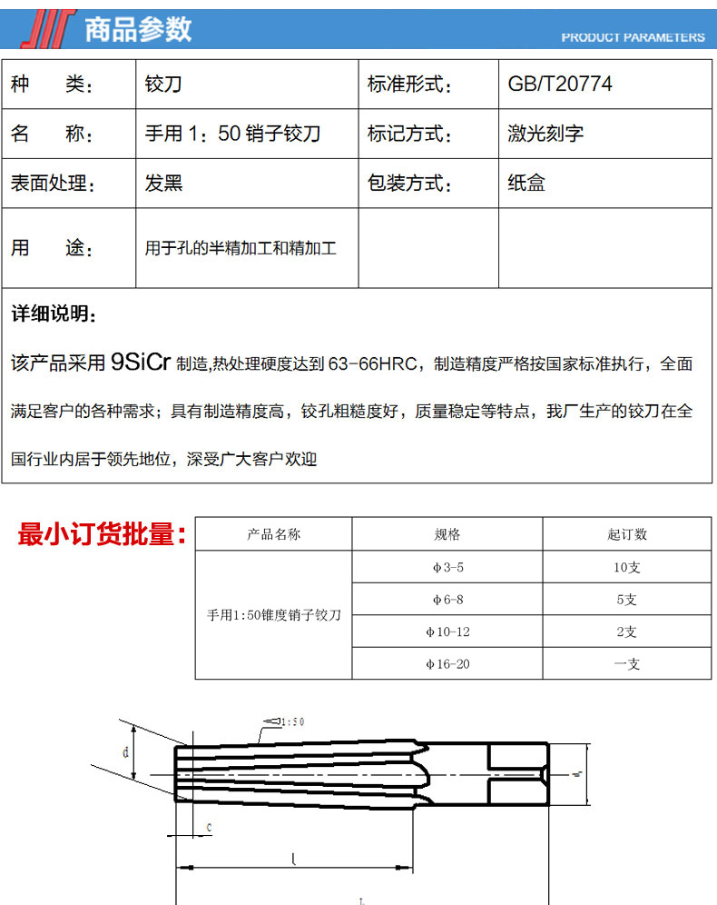 Развертка штыря Тома развертка штыря конусности 1: 50 руки 4-16 мм