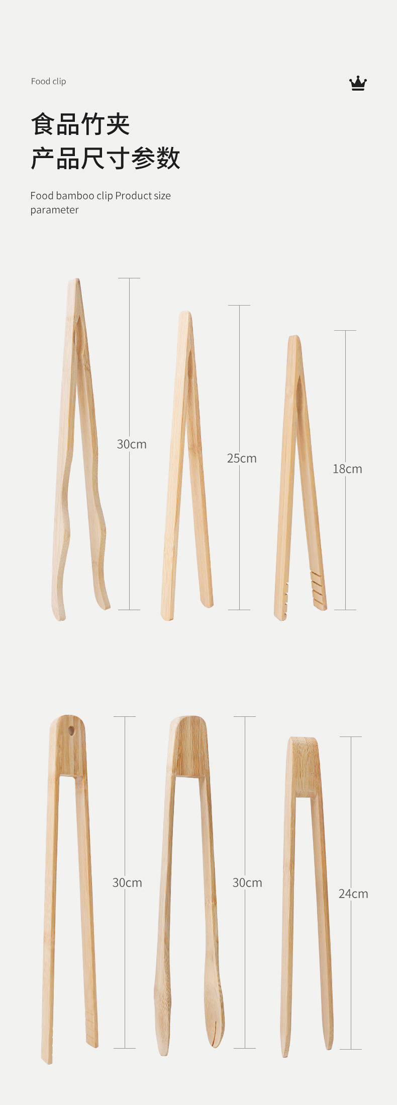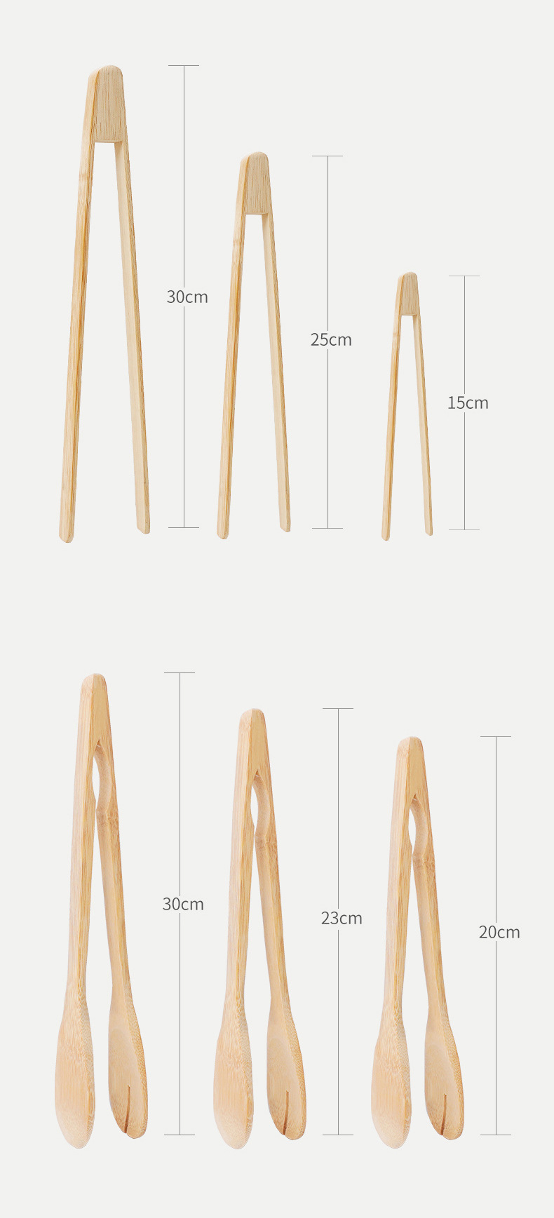 15 см [зажим из карбонизированного бамбука]; 25 см [зажим из карбонизированного бамбука]; 30 см [зажим из карбонизированного бамбука]; 20 см [суповая клипса]; 23 см [зажим для супа]; 30 см [суповая клипса]; 18 см [V клип]; 25 см [V клип]; 30 см [Волнистый зажим]