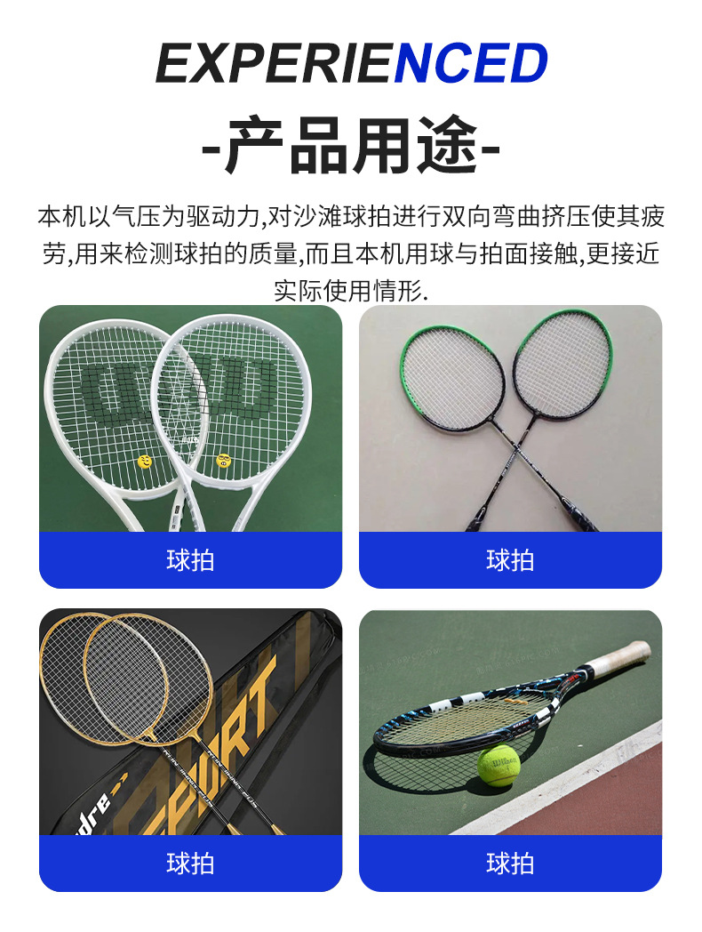 Эта машина использована для того чтобы сымитировать угол отскока шарика после ракетки бадминтона и ракетки тенниса для того чтобы оценить упругость сетки ракетки.