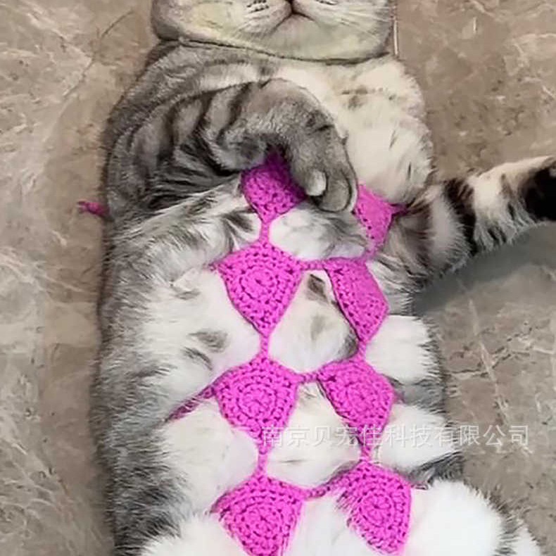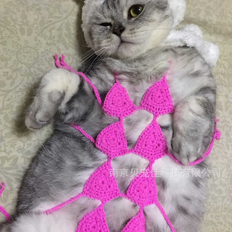 Tiktok Интернет Популярное ручной работы шерстяной котенок бикини забавное нижнее белье для домашних животных бюстгальтер для собак реквизит для фотосъемки