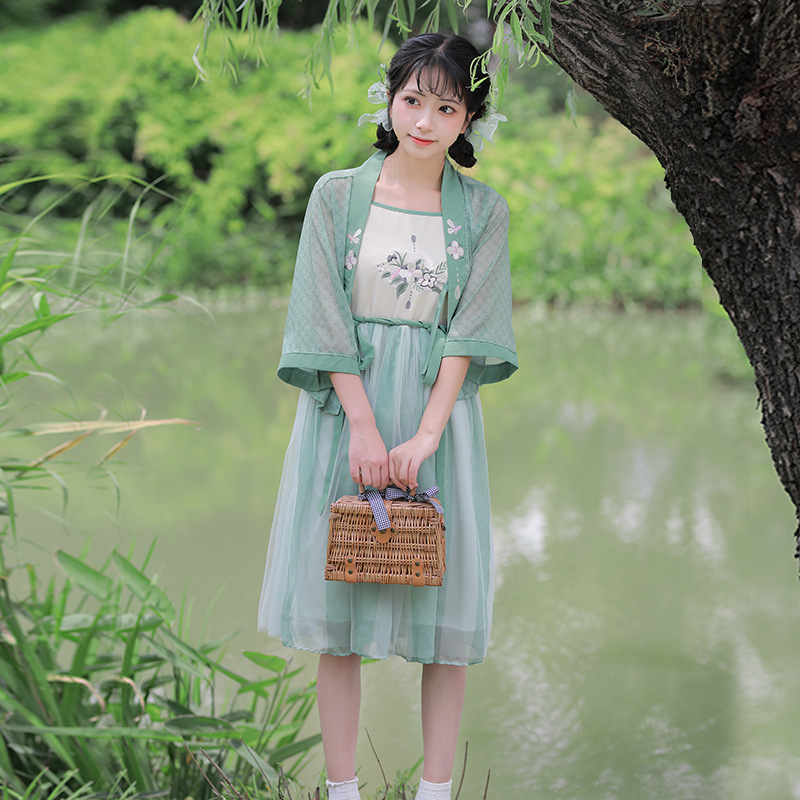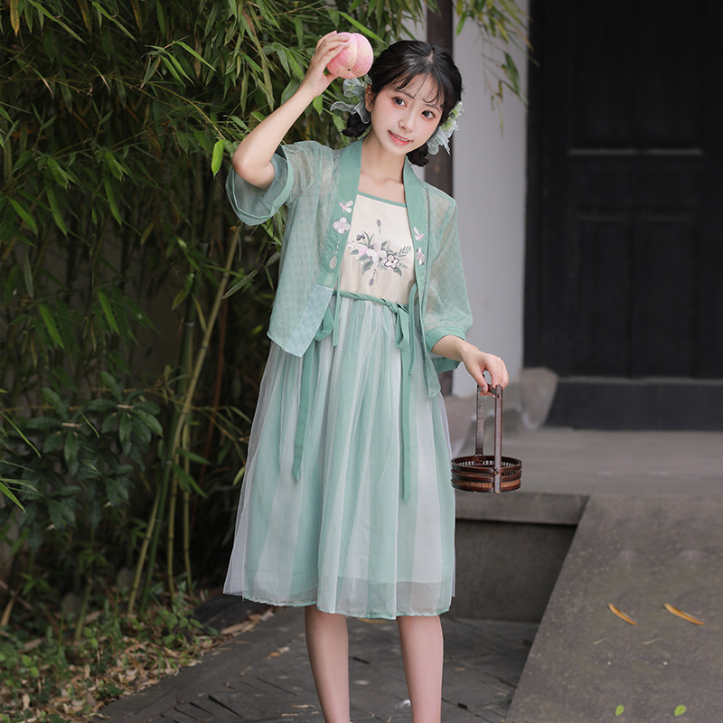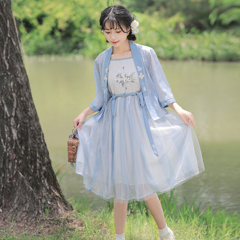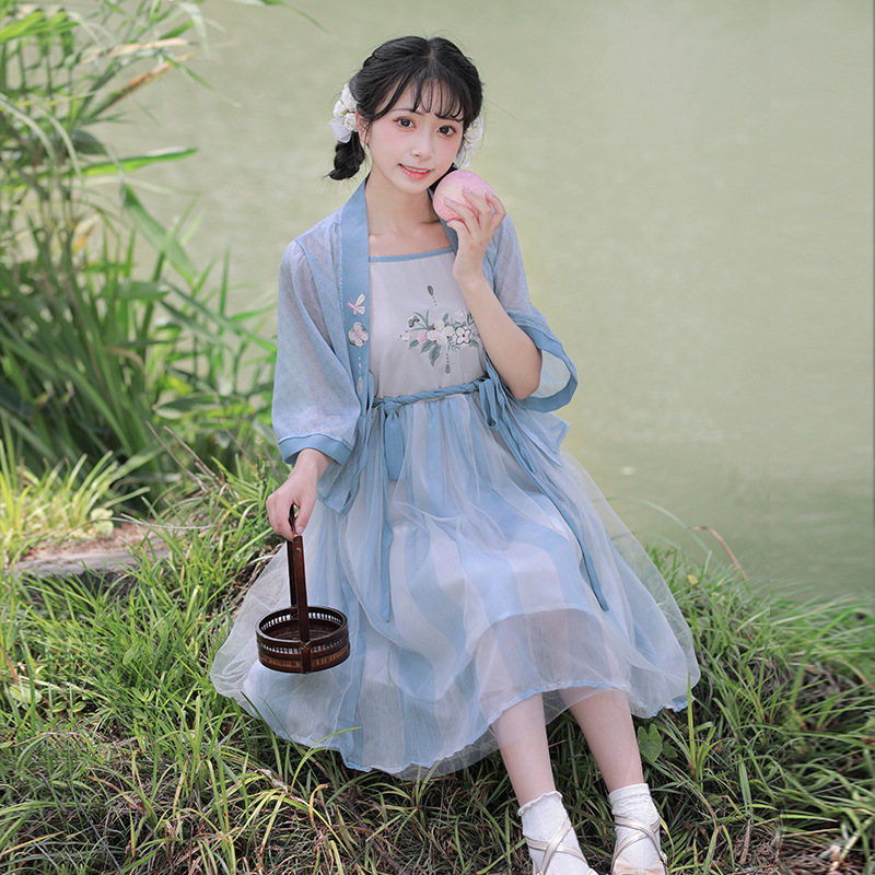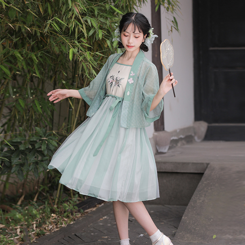 Ханьфу женский ученик средней школы летний Повседневный древний костюм Улучшенная юбка с элементом ханьской талии Свежая Элегантная классная одежда в китайском стиле