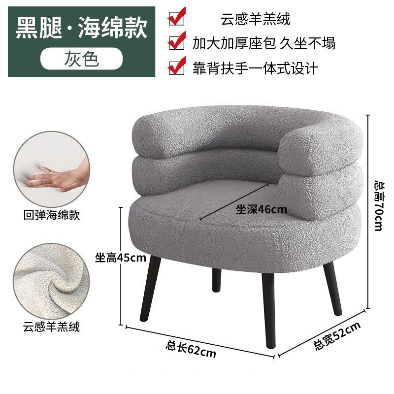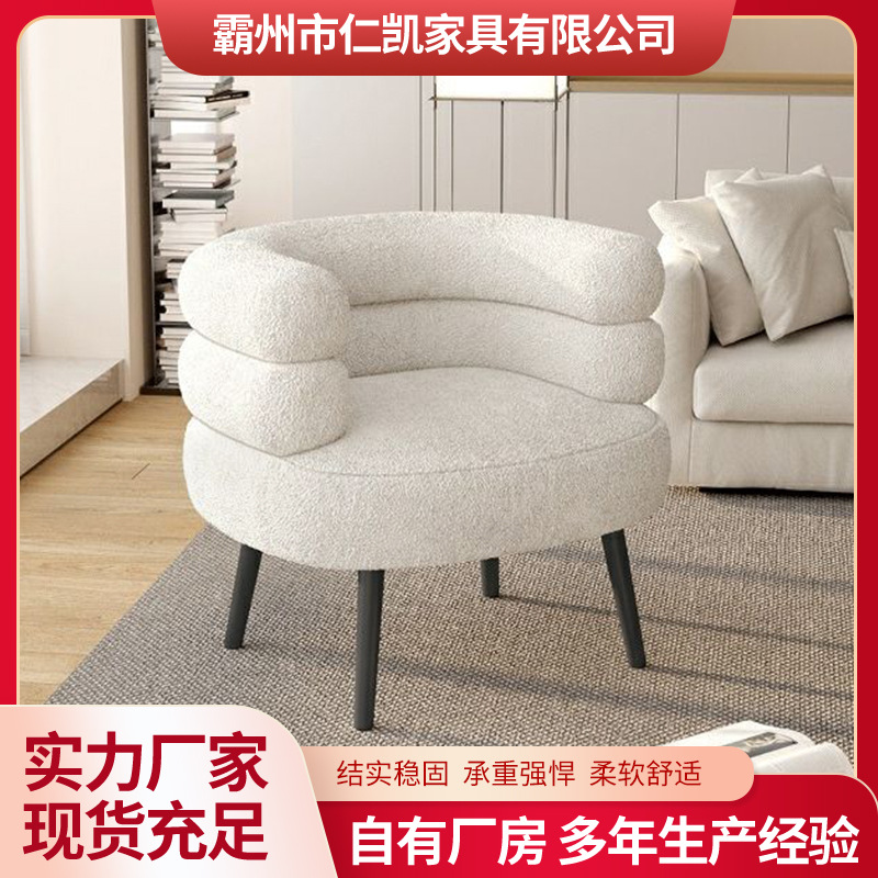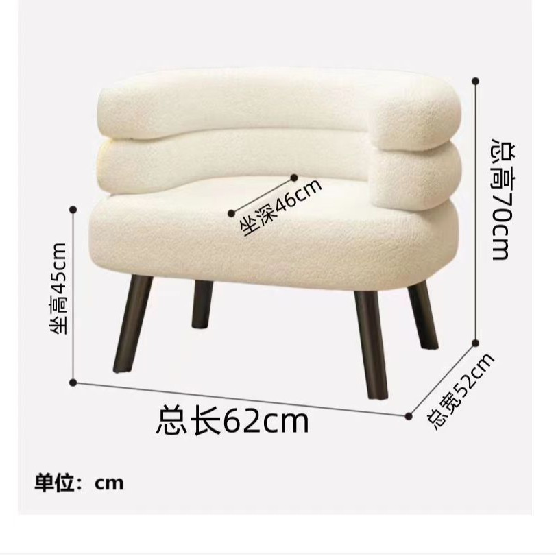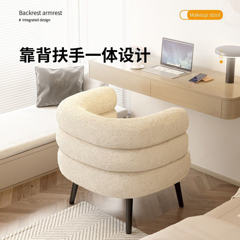 Стул для макияжа интернет-знаменитостей Бытовой простой ленивый стул со спинкой Туалетный стул с низкими ножками Кремовый стиль Однотонный стул из овечьей шерсти