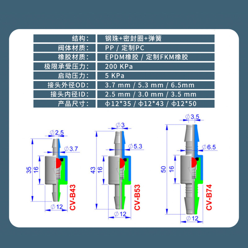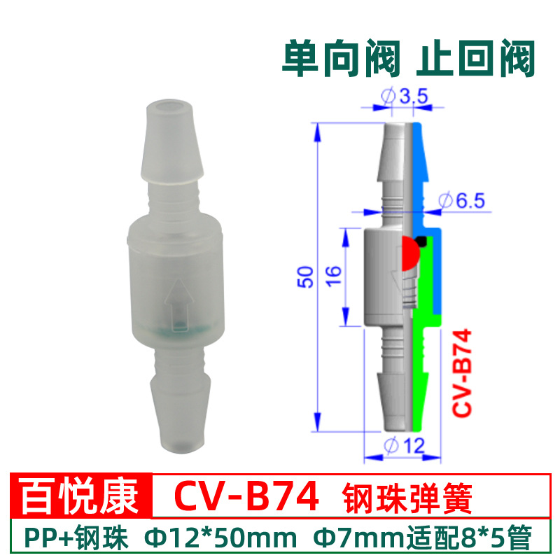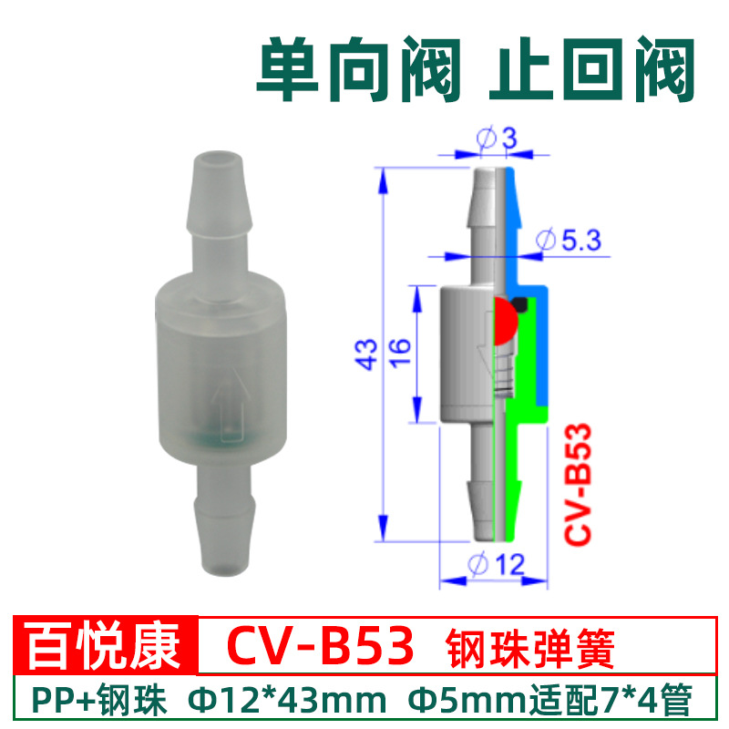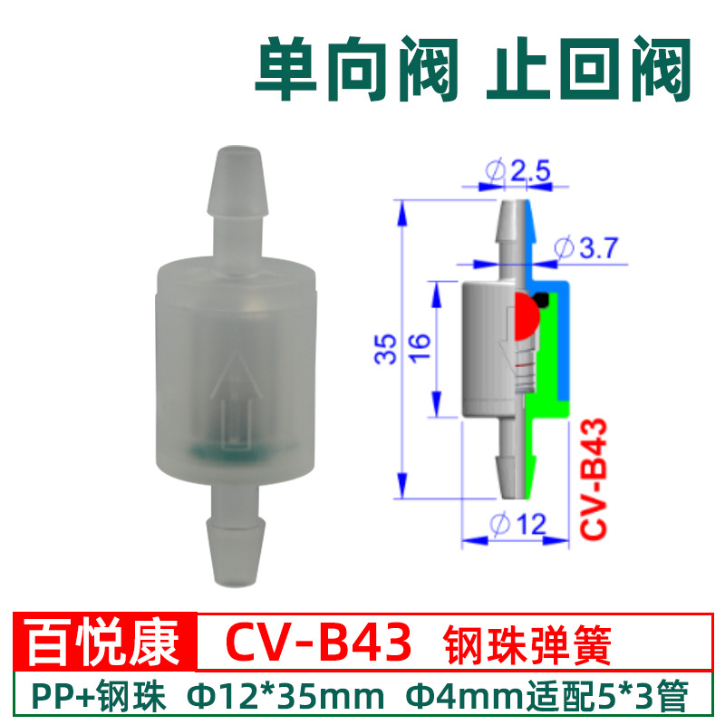 Односторонний обратный клапан Baiyuekang CV-B с пружинной структурой из стальных шариков, быстродействующий пластиковый, с функцией сброса давления, микронасосный, маслостойкий