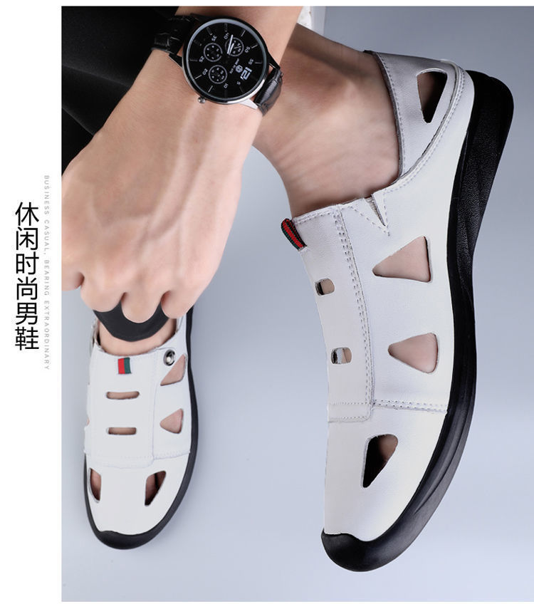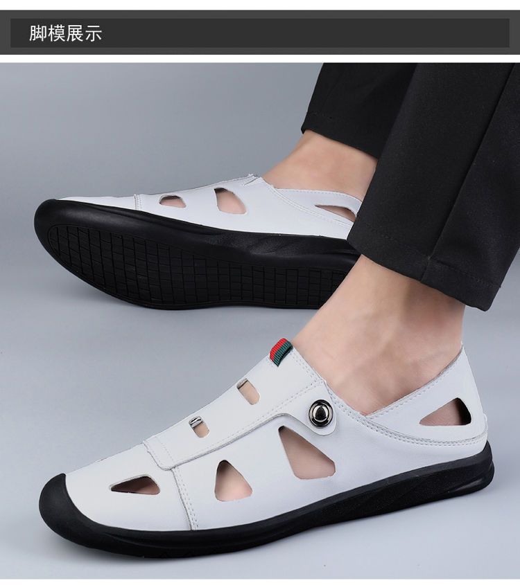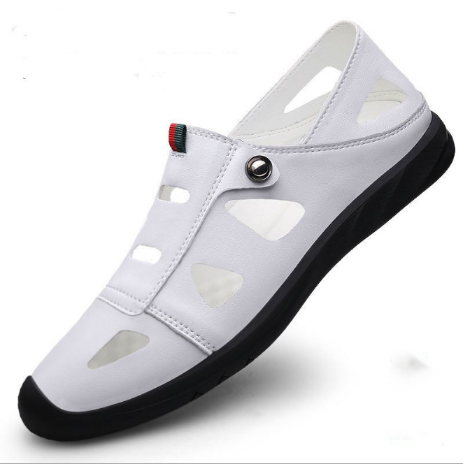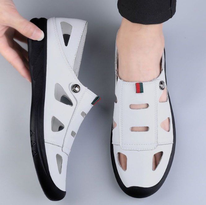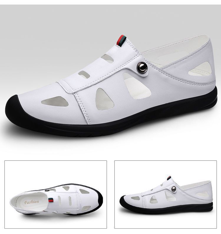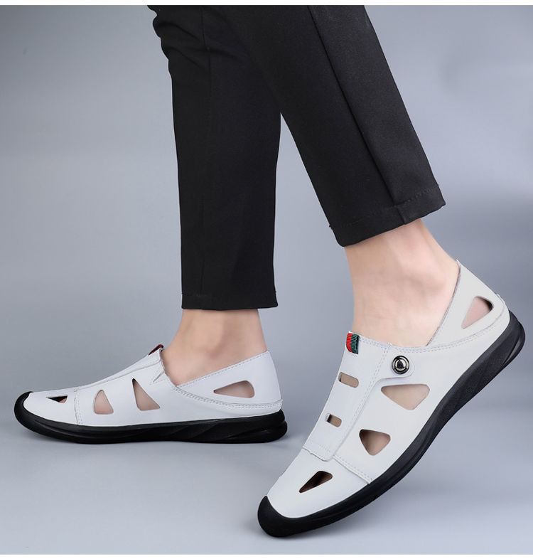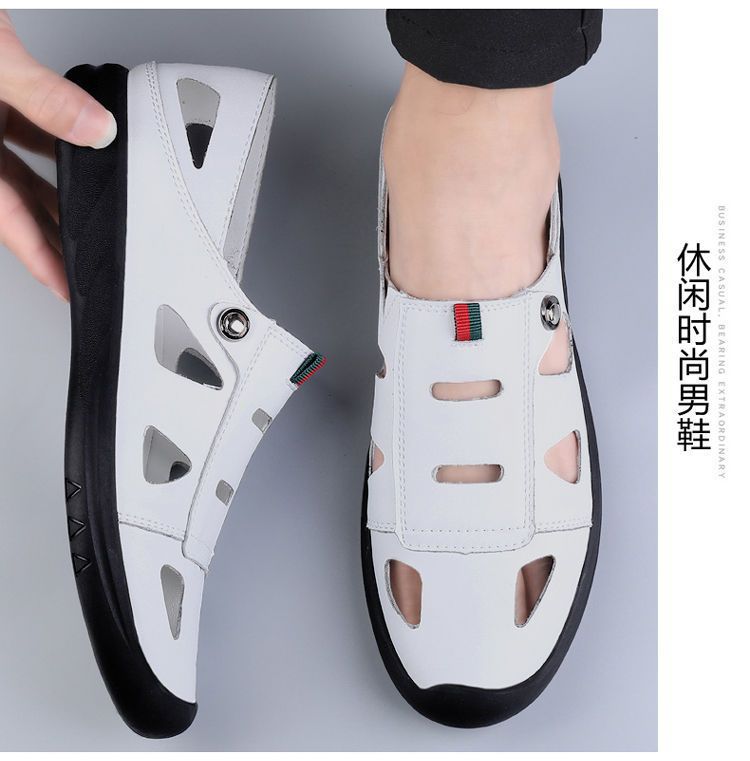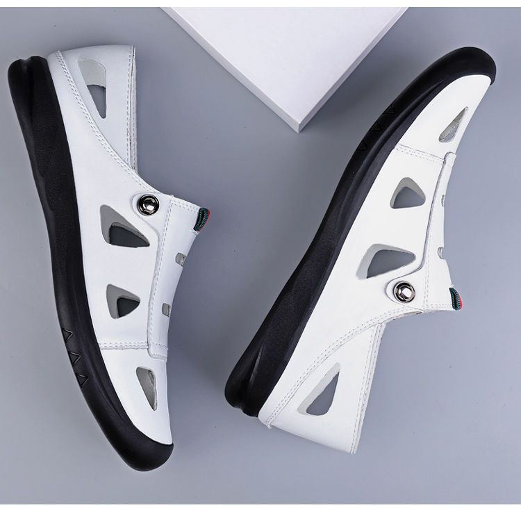 2023 летняя новая мужская повседневная обувь без шнуровки белые туфли с дыроколом повседневная кожаная обувь полые кожаные сандалии