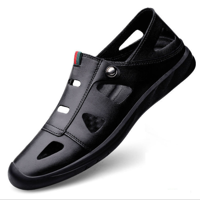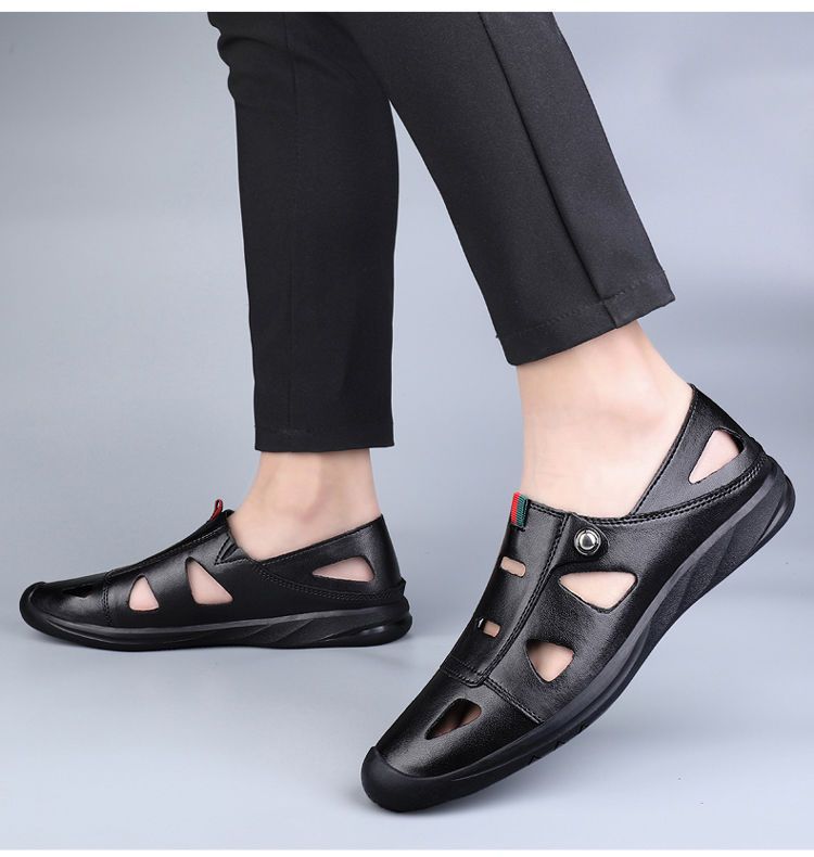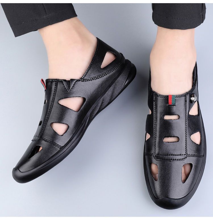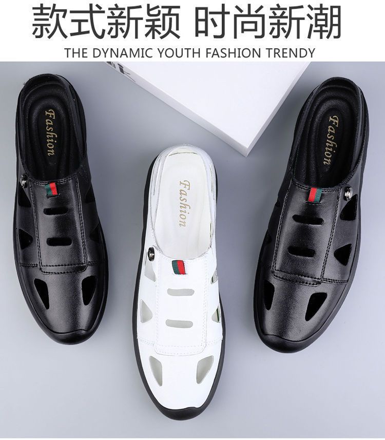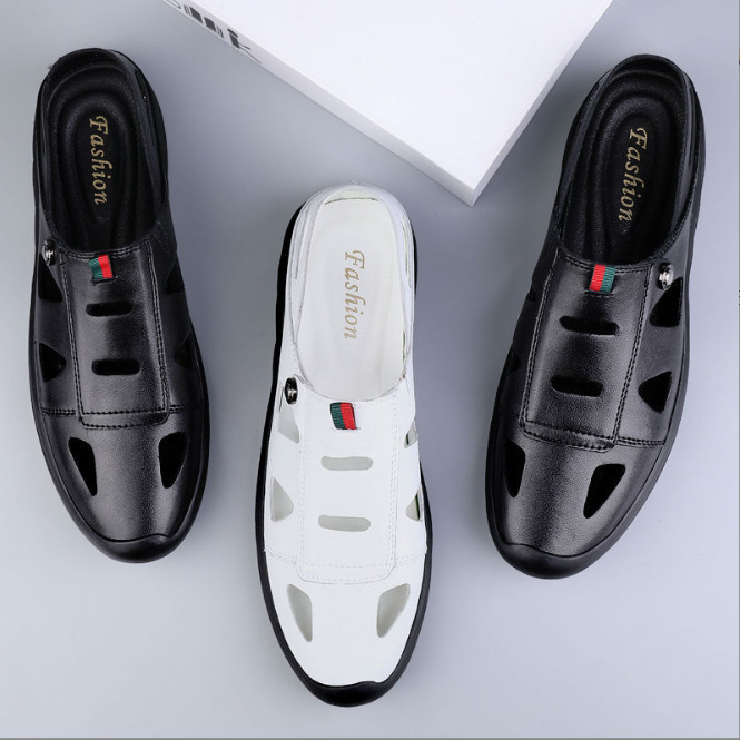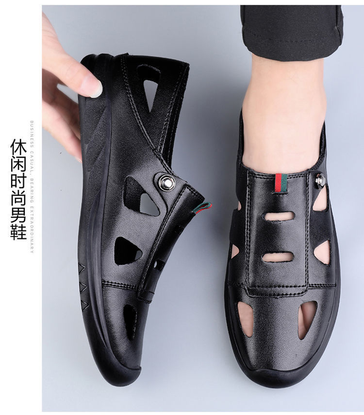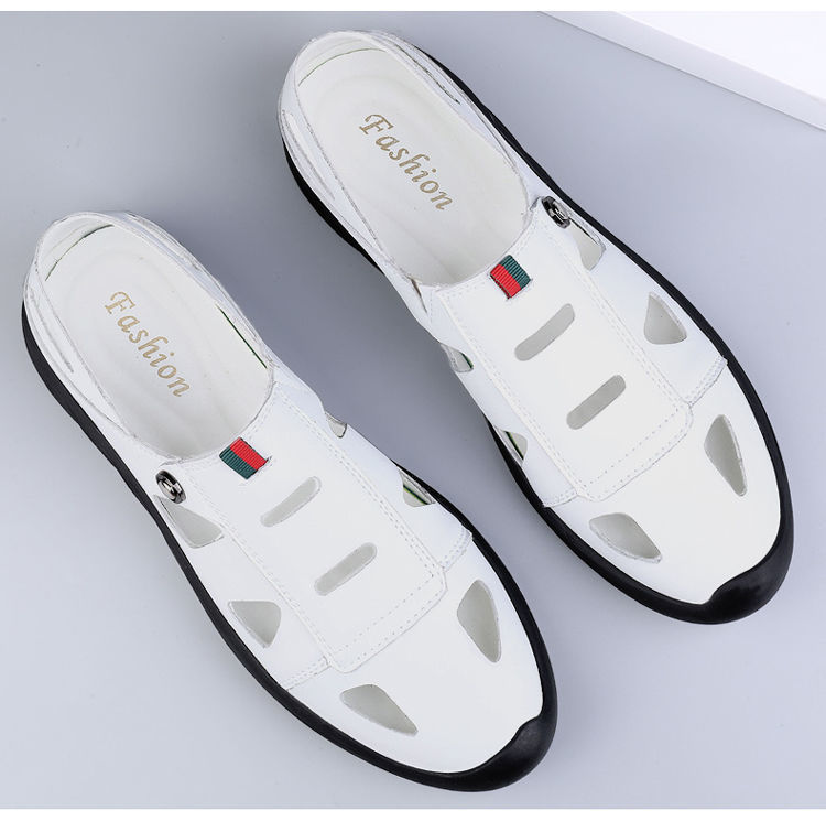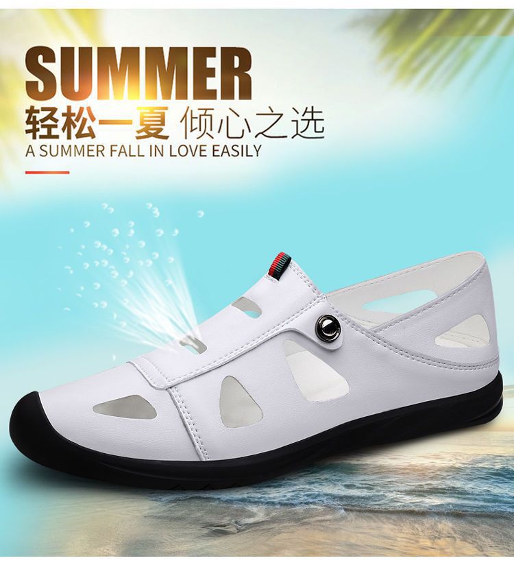 2023 летняя новая мужская повседневная обувь без шнуровки белые туфли с дыроколом повседневная кожаная обувь полые кожаные сандалии
