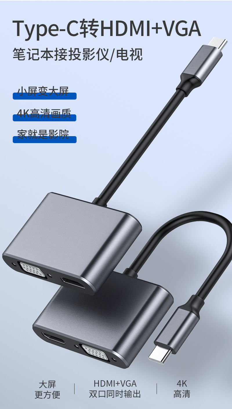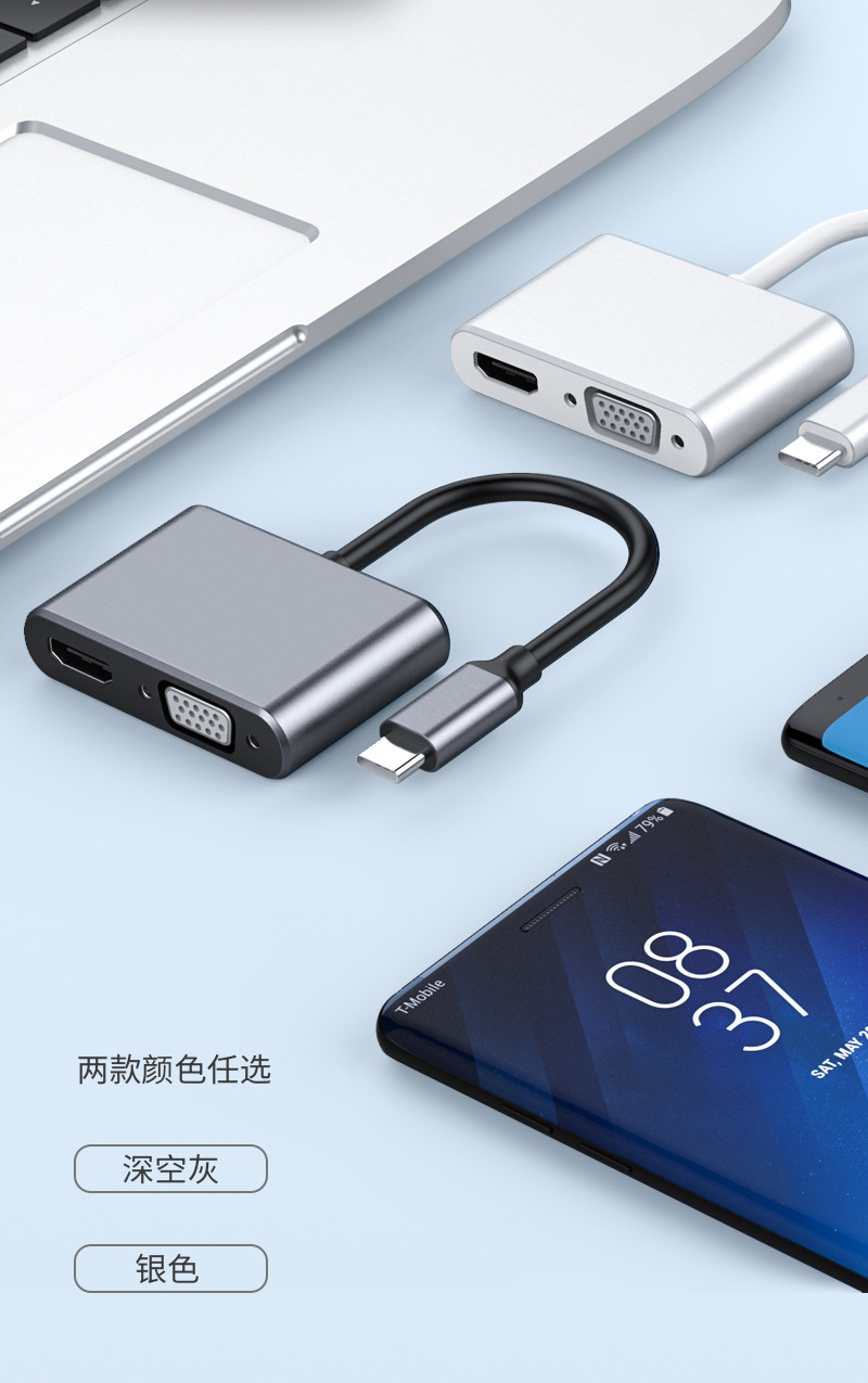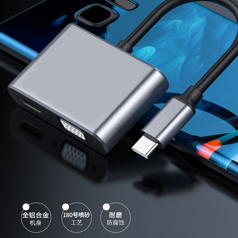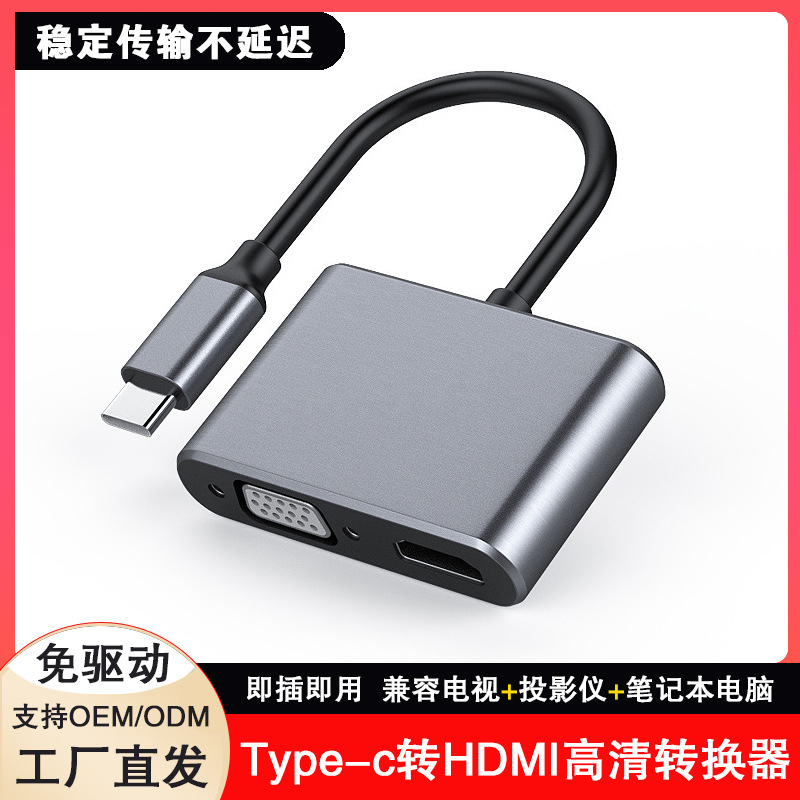 2-в-1 HUB док-станция HUB TYPEC TO VGA + HDMI HD разветвитель док-станция расширения