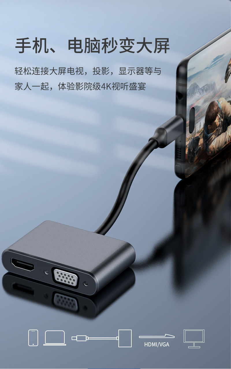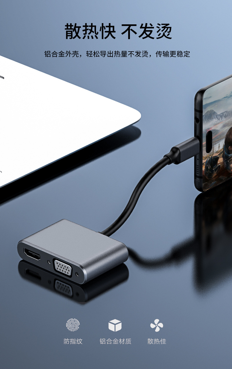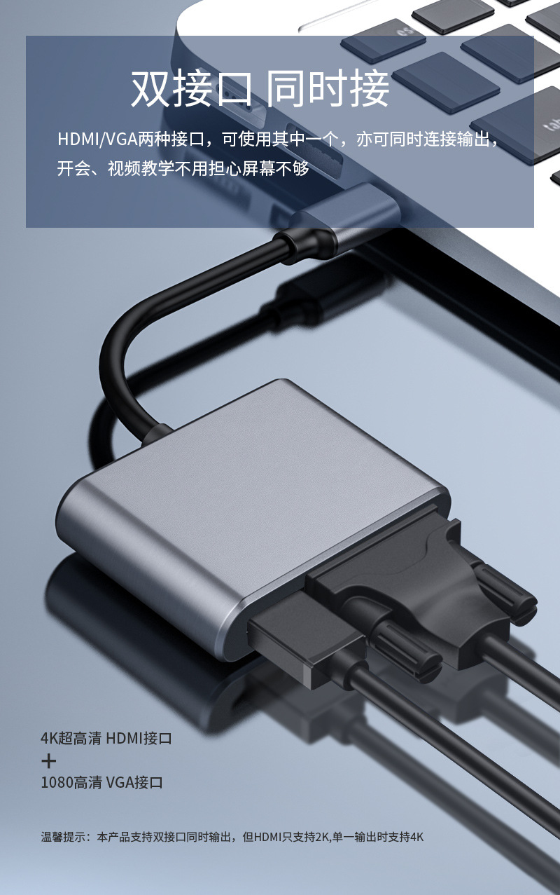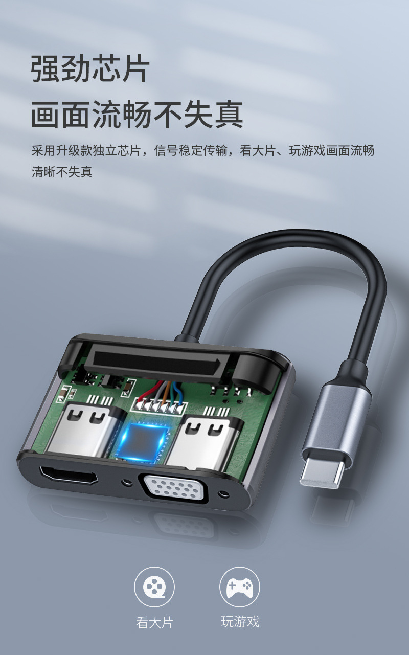 2-в-1 HUB док-станция HUB TYPEC TO VGA + HDMI HD разветвитель док-станция расширения
