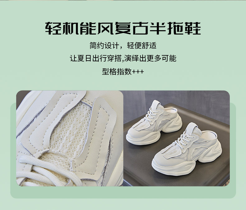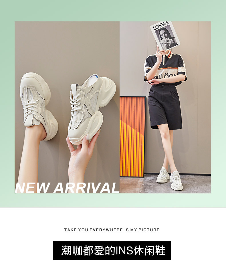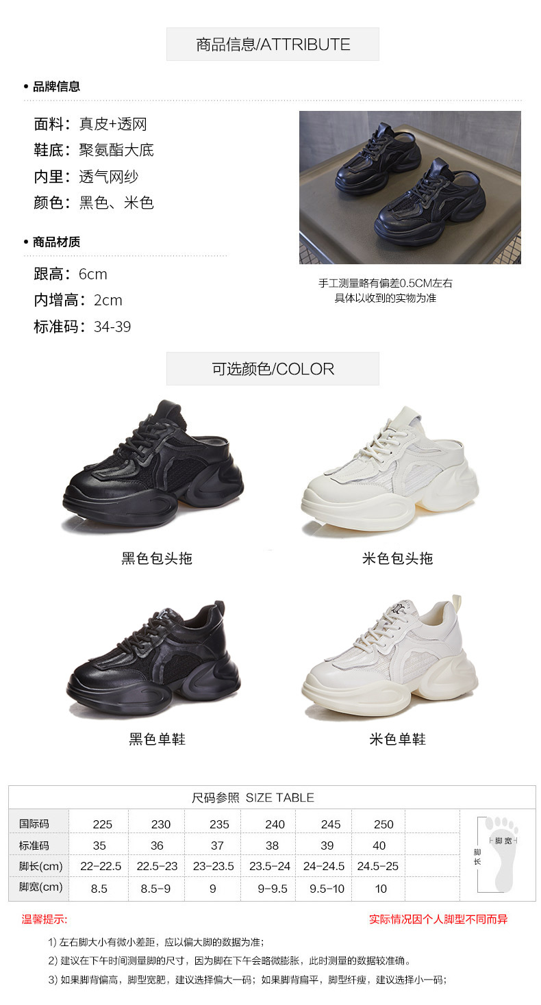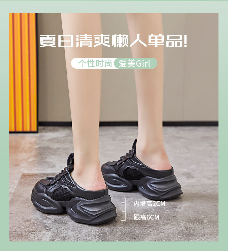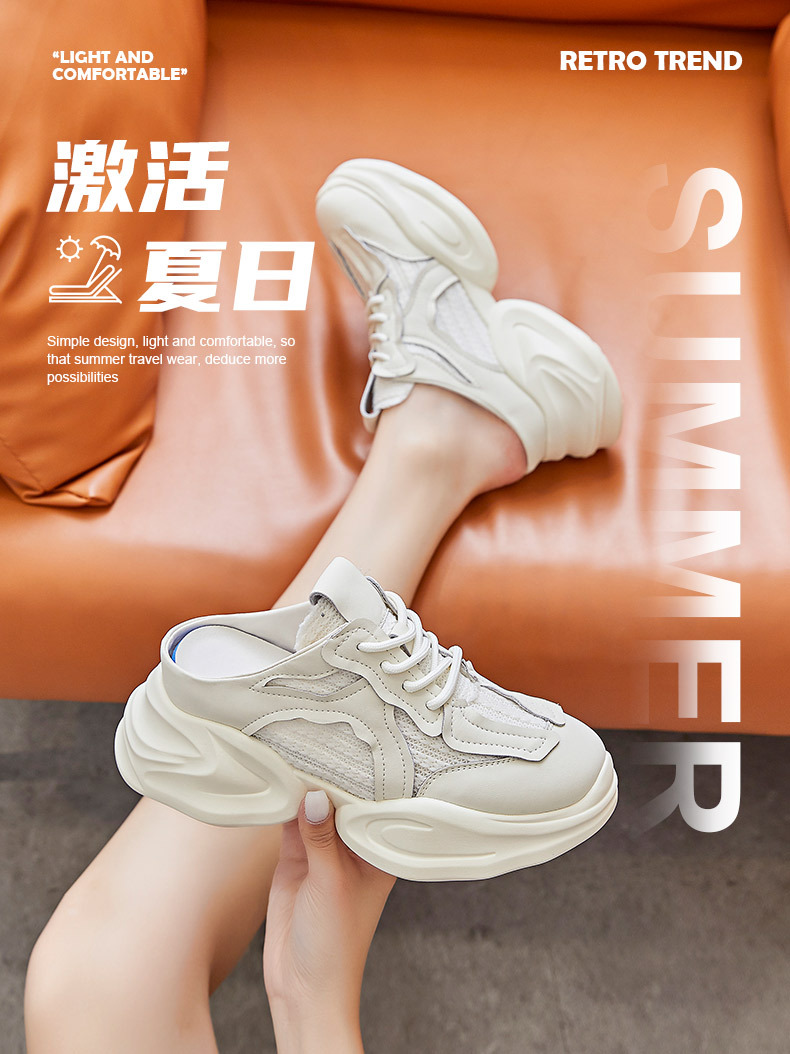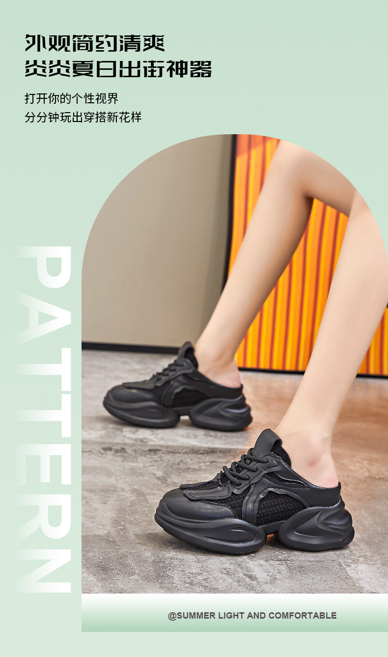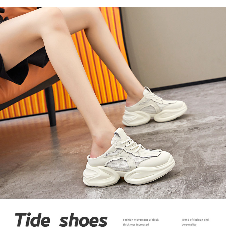 Дышащие женские полутапочки Baotou с внутренним увеличением, новинка весны 202, повседневная женская обувь для папы без каблука на толстой подошве