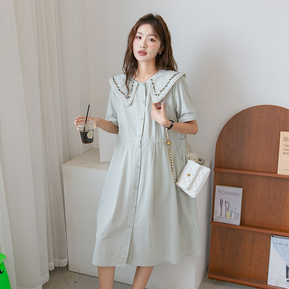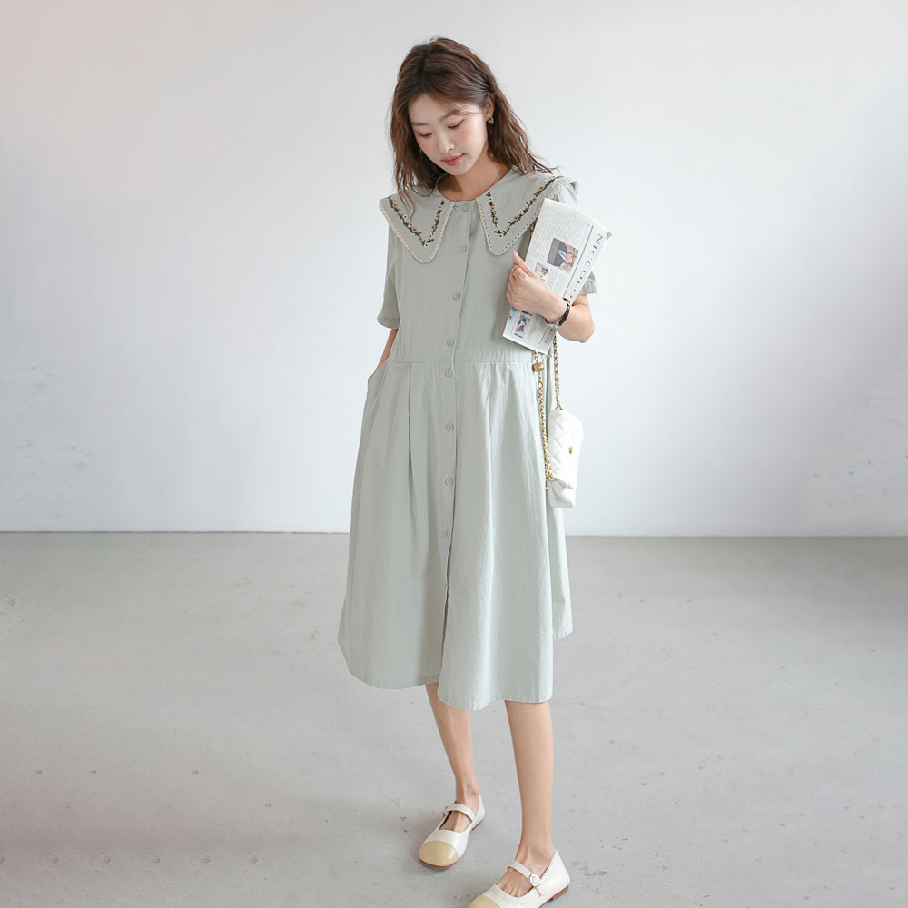 Лето Новый материнства юбка мода стиль возраст сокращения вышивка платье отворотом длинная рубашка юбка прилив