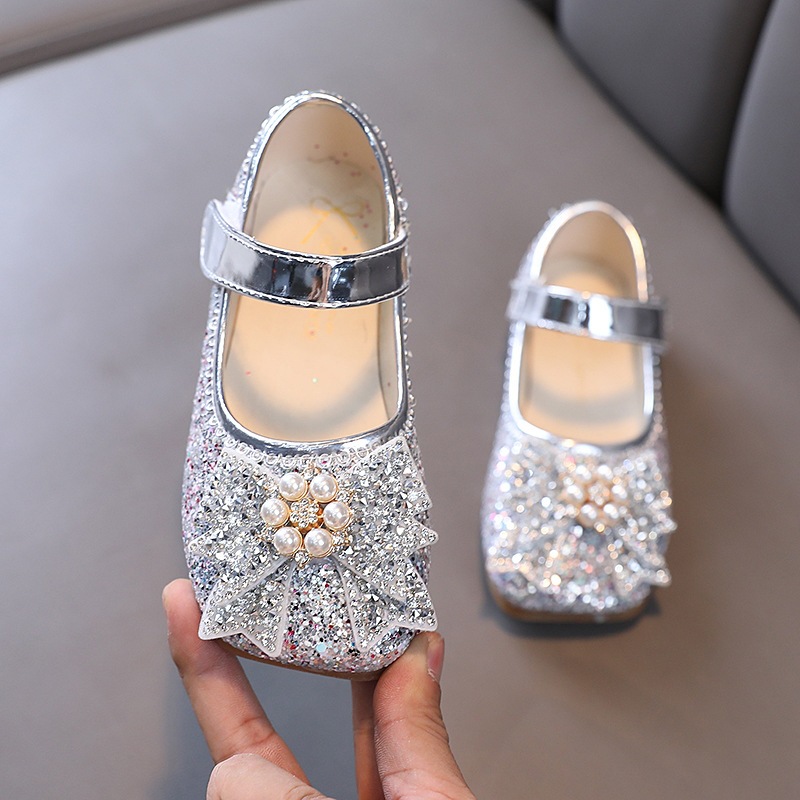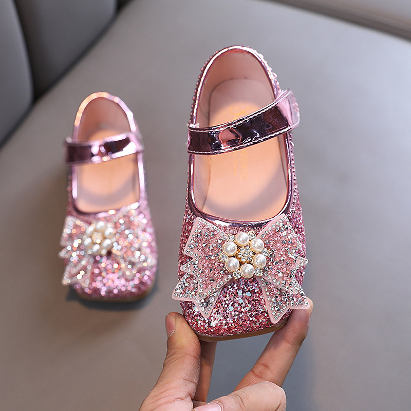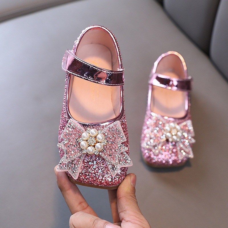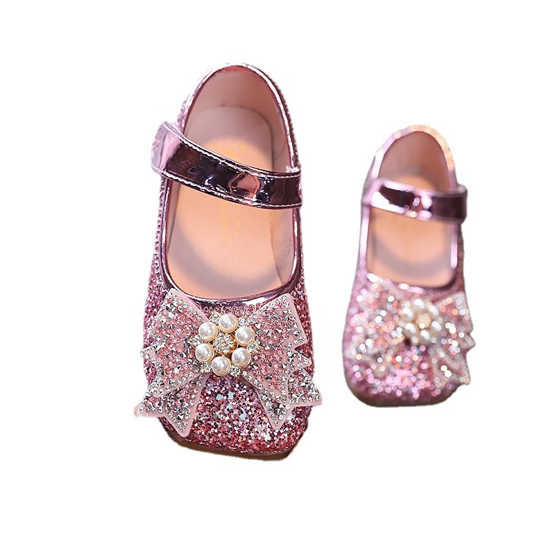 Туфли для девочек со стразами, новые детские кожаные туфли с пайетками, мягкие туфли на плоской подошве для детей постарше, размеры 21-36, мягкие и милые.