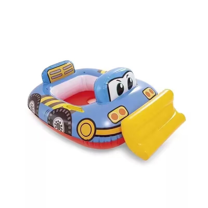 此款汽车艇是2022生产出来的火热爆款,因款式新颖,造型独特,深受广大宝宝的喜爱,可在游泳馆,母婴店,个人家庭水池里使用,宝宝把两只脚插入汽车艇的2个孔中,坐在游泳艇里面,脚部可以用力蹬来回晃动,双手也可以自由的划水娱乐,功能性很全,可以促进宝宝的手脑结合能力,还能达到促进发育强身健体的好处。。