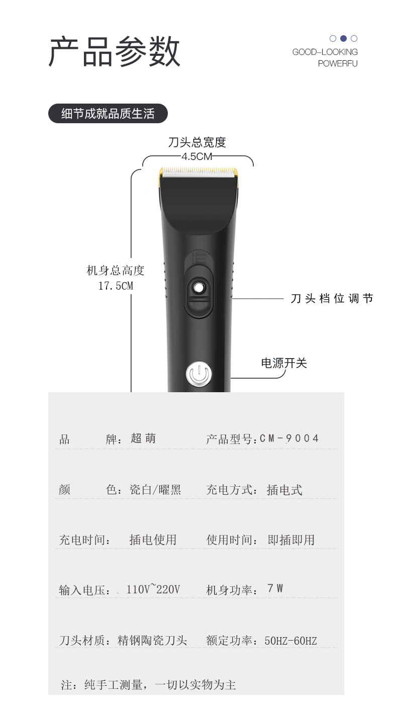 特 别:此款也有充电款可选,有3款不同用途刀头可配,分别为脚毛刀 剃毛刀 留毛刀