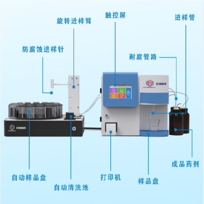 2.全流程自动检测:自动定量进样、自动定量加试剂、自动控温消解、自动冷却、自动检测、自动排废、自动清洗,全程无需