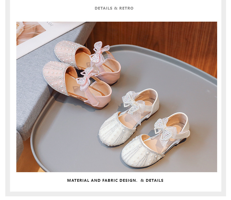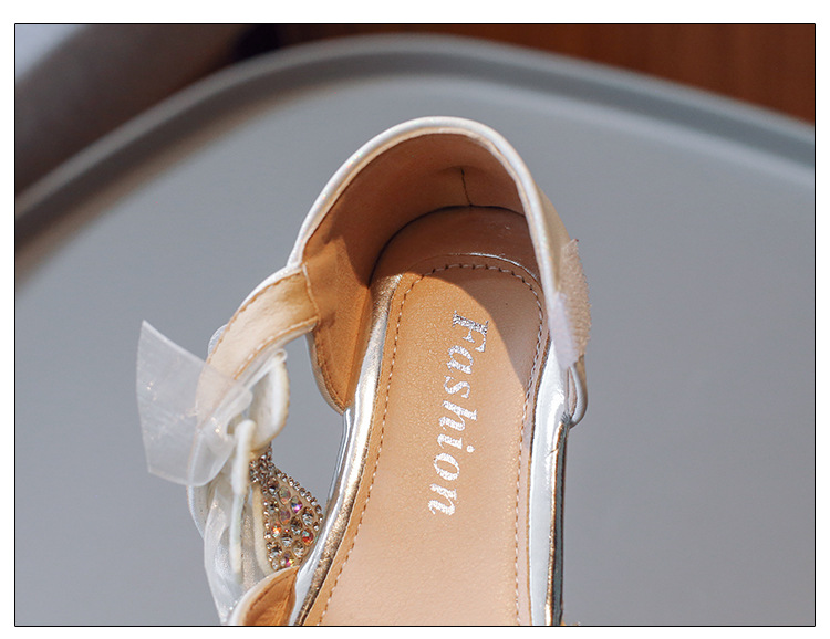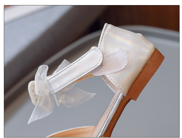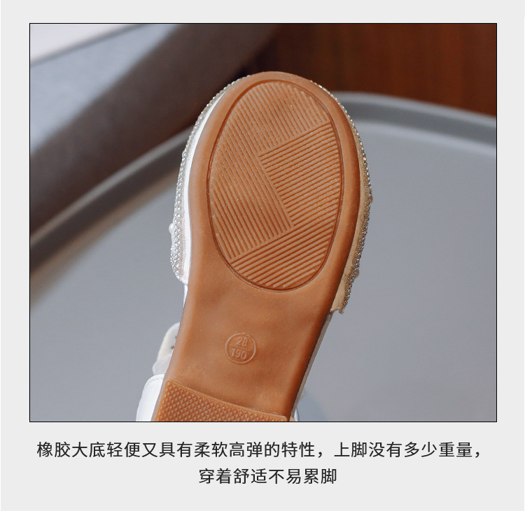 Туфли принцессы для девочек, новинка лета 2024, новинка лета для девочек, нескользящие детские модные полусандалии на мягкой подошве со стразами и бантом