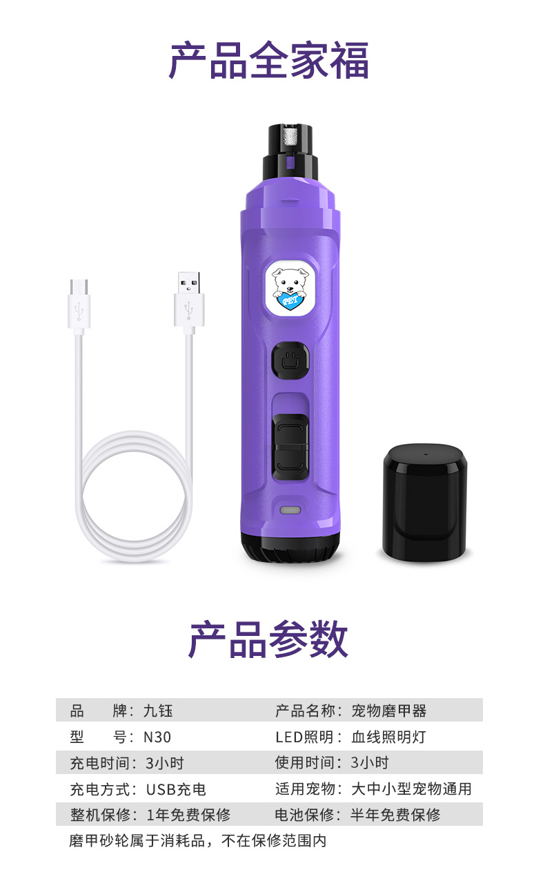 Электрический триммер для когтей Joyu Nine Jewel с LED-подсветкой для кошек и собак, мощные когтерезы для домашних животных, для собак и кошек