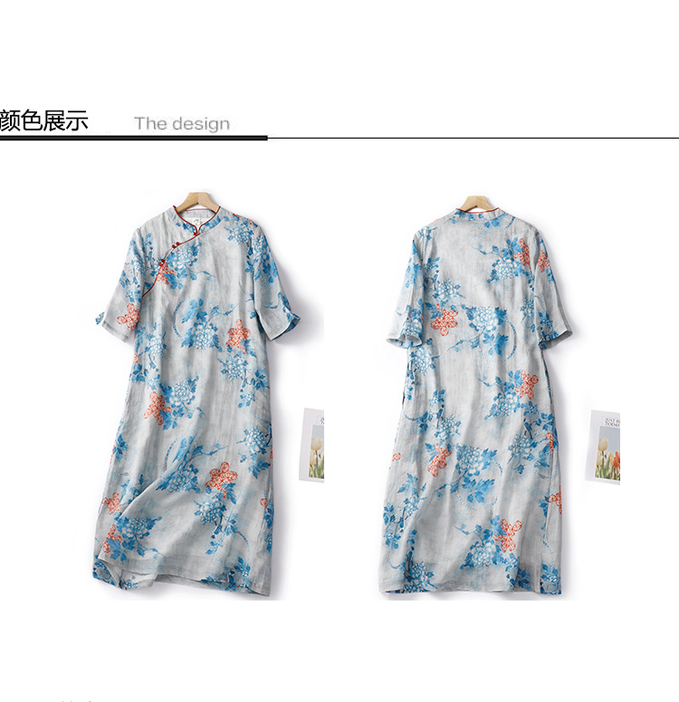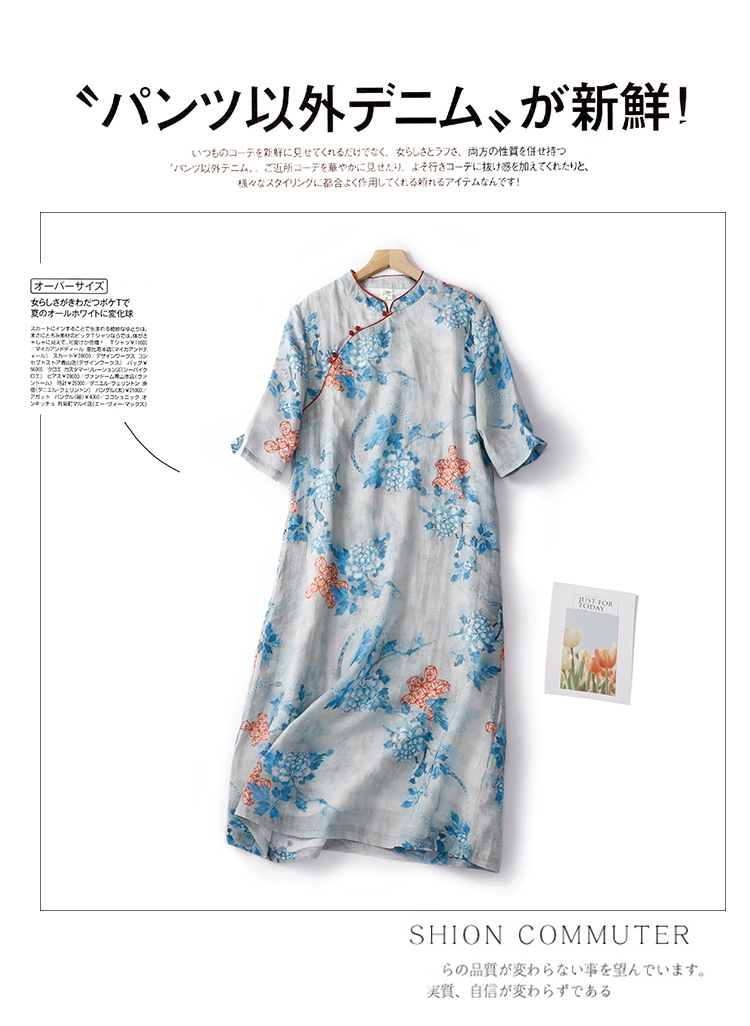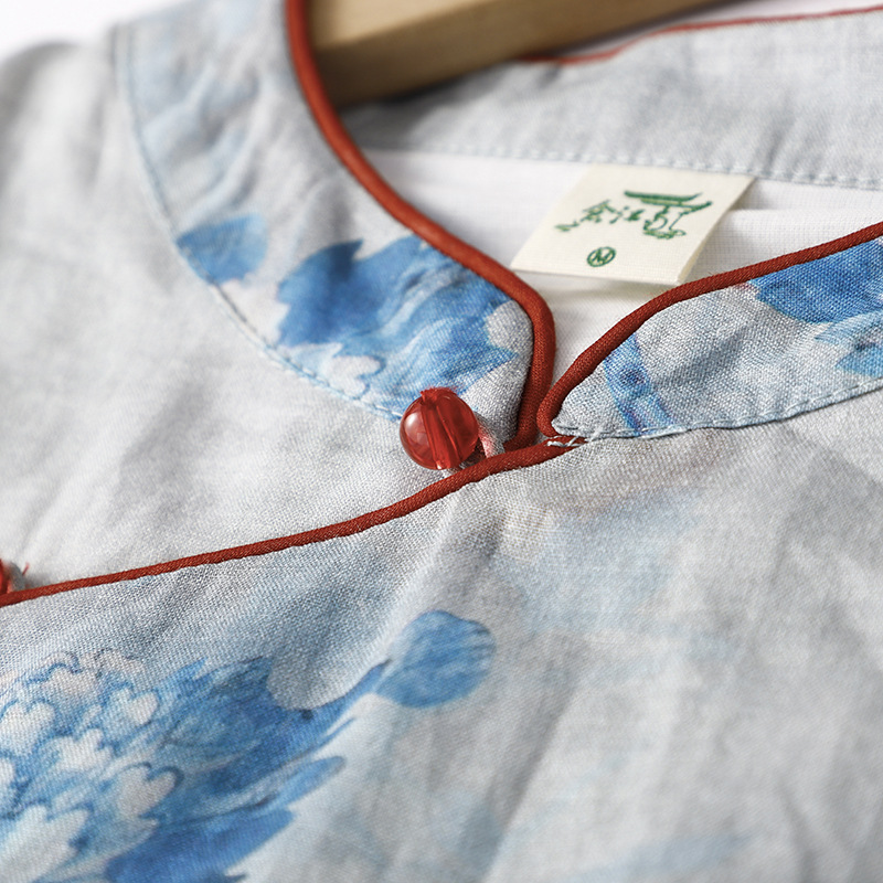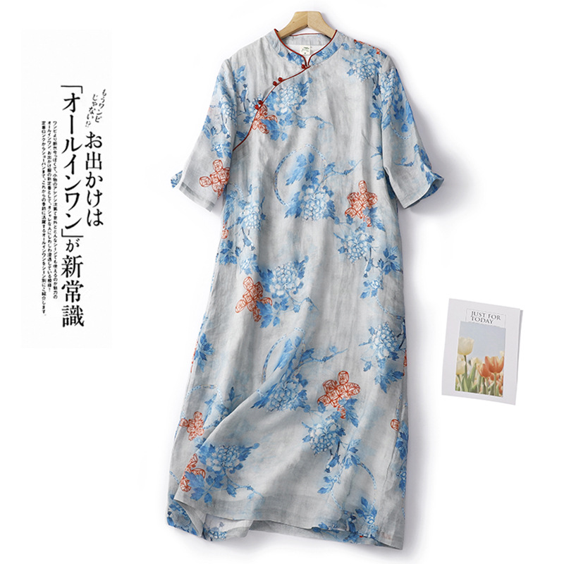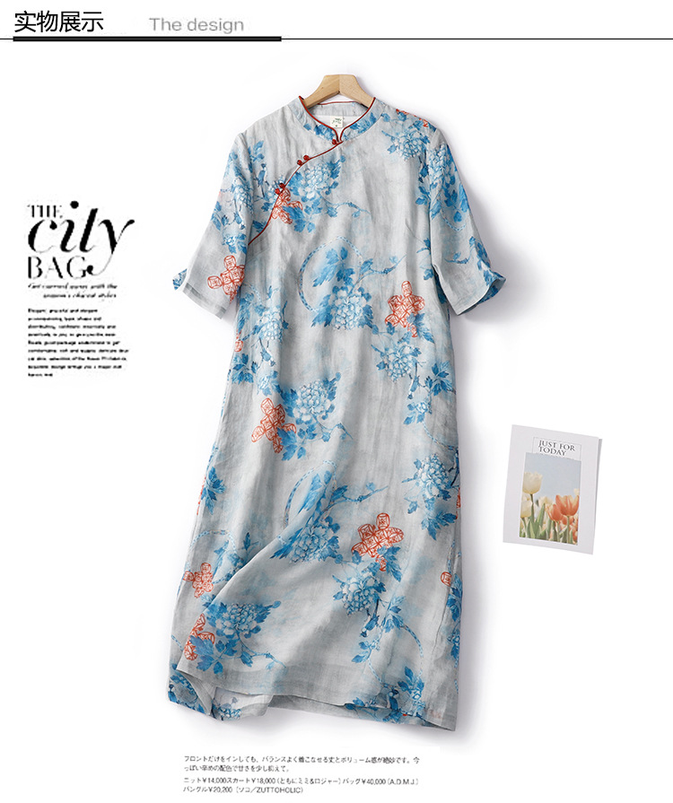 Настоящий выстрел в китайском стиле Рами стоячий воротник скошенная Пряжка из бисера Чонсам Ретро дзен пригородная темпераментная юбка