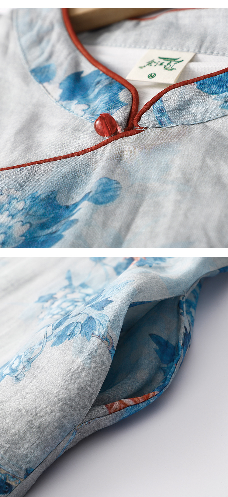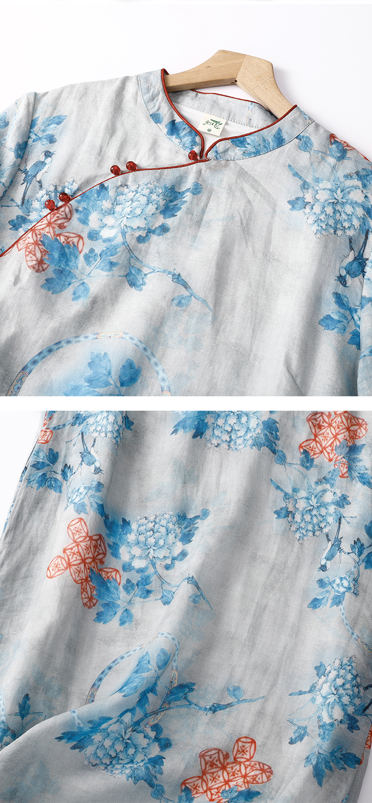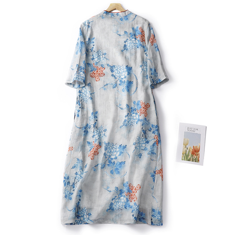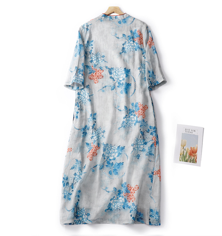 Настоящий выстрел в китайском стиле Рами стоячий воротник скошенная Пряжка из бисера Чонсам Ретро дзен пригородная темпераментная юбка