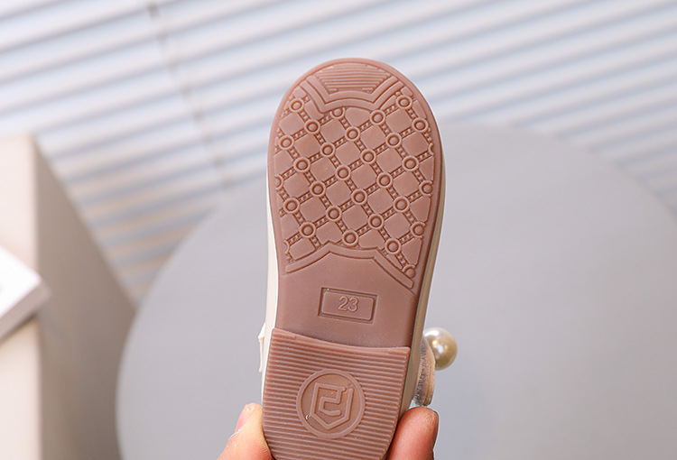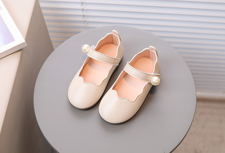 Детская Маленькая кожаная обувь с квадратным носком, модные туфли на плоской подошве с большим жемчугом для девочек, однотонные туфли принцессы, танцевальная обувь с мягкой подошвой