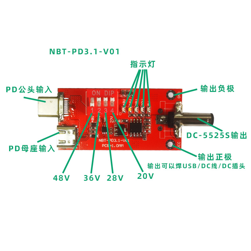 固定电压输出,拨码开关打到对应的电压数字,既可以读取,PD3.1协议的不同电压,20V和28V.