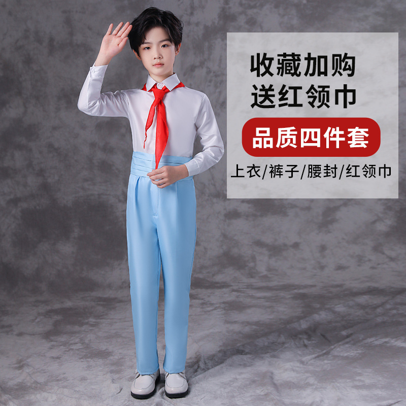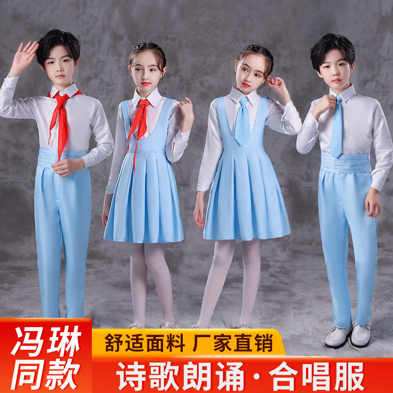 Детская одежда для хора Feng Lin Одежда для классов Красный шарф для учеников начальной и средней школы Поэзия Патриотическое декламация Одежда для выступлений